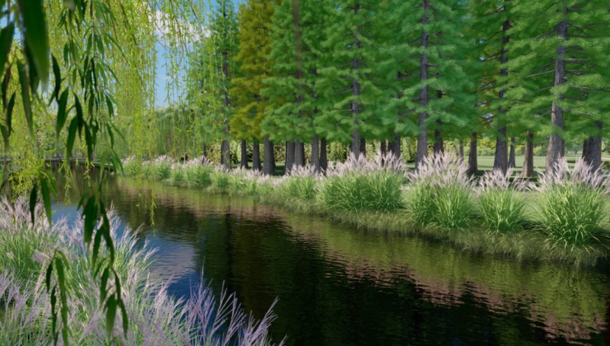 保留梳理为主,着重提升水质,从劣V类至V类水。维持碳氧平衡,营造适宜鸟类、无尾两栖类及昆虫等生物栖息的多样化生境,保护生物多样性