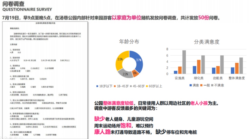 汤巷公园辐射人口达8万人,与南侧汤巷新村等社区联系紧密,主要使用人群分为两大类:工作日以周边社区的老人、小孩为主,周末以周边运动爱好者为主,两大群体在使用习惯、需求方面均有较大差异。