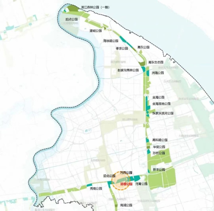 汤巷公园改造工程位于外环林带浦东南段,东至康新公路,西至外环罗山路立交,南至康人路,北至A20外环高速,改造总面积71.12万平米。