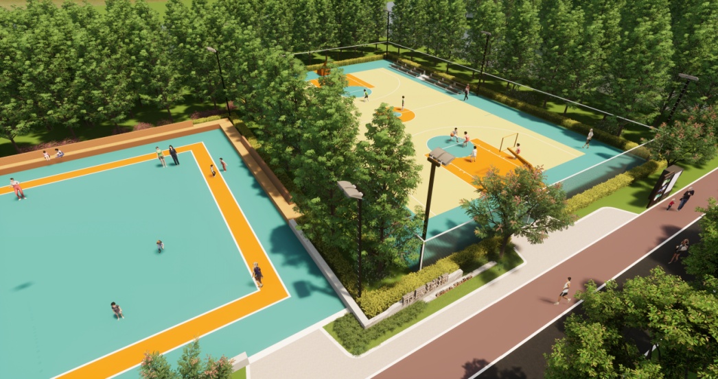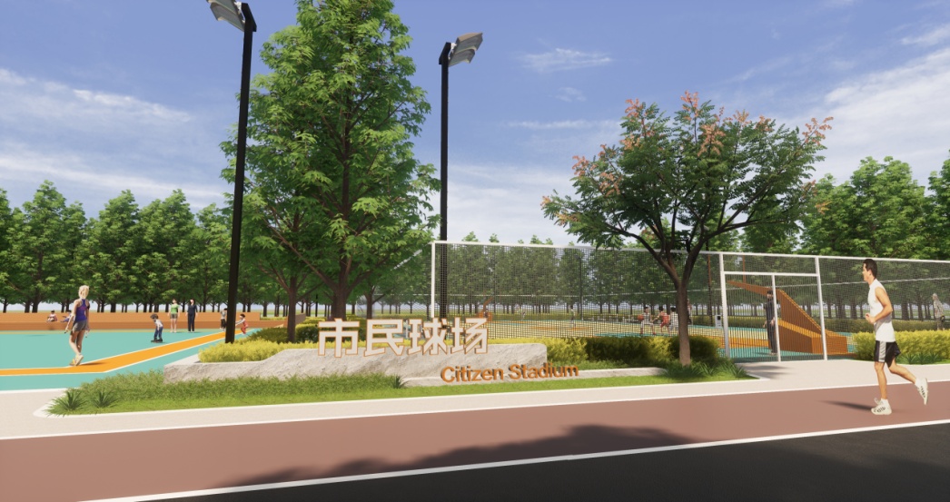 紧扣体育公园主题,结合居民需求。为运动爱好者提供2.3万平米健身、运动设施,包括:10片球场,6项体育运动(足球、篮球场、网球、门球、滑板、动感单车);为小朋友增设“水乐园”、“平衡乐园”;为老人设置智慧健身场,形成多元游乐特色。