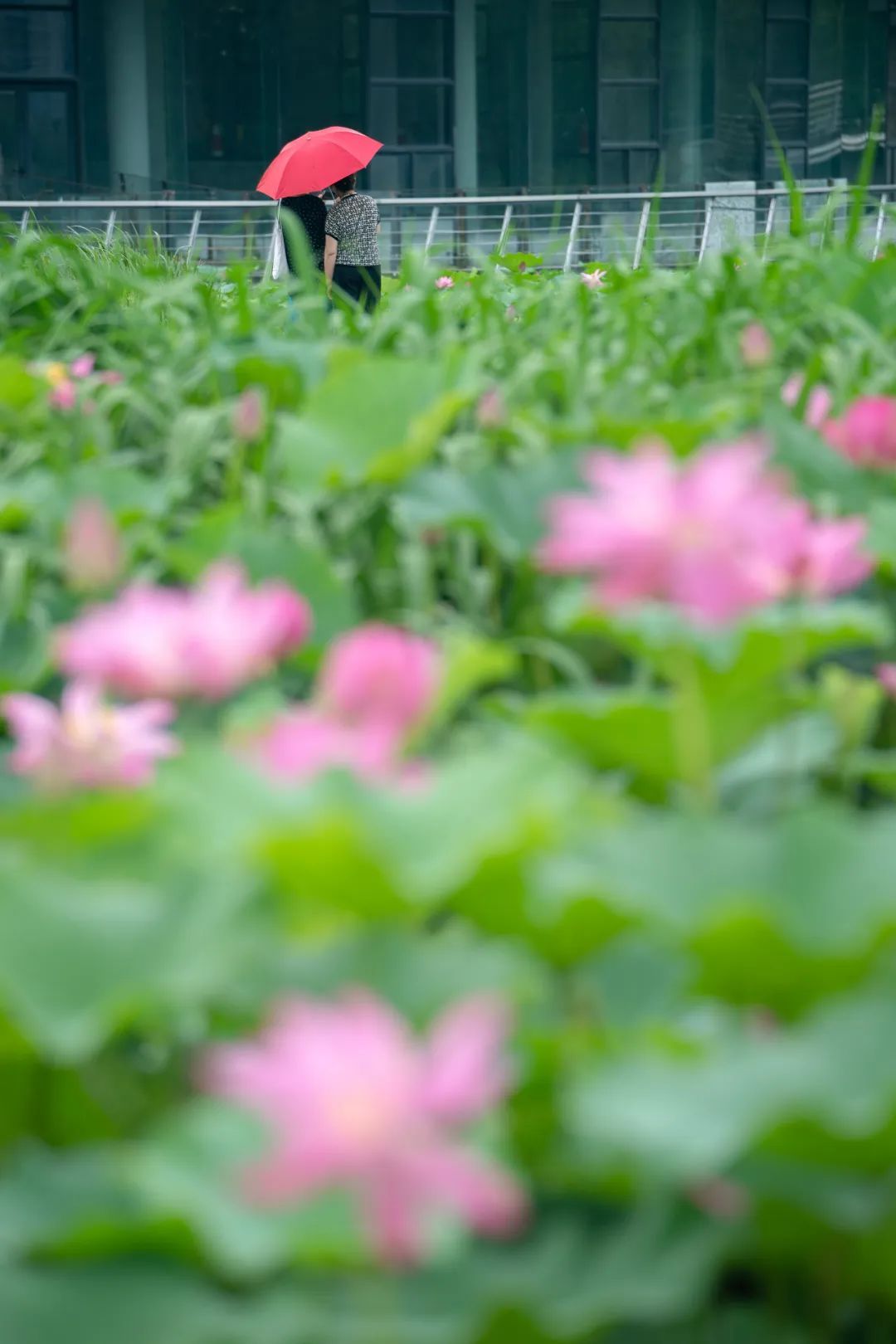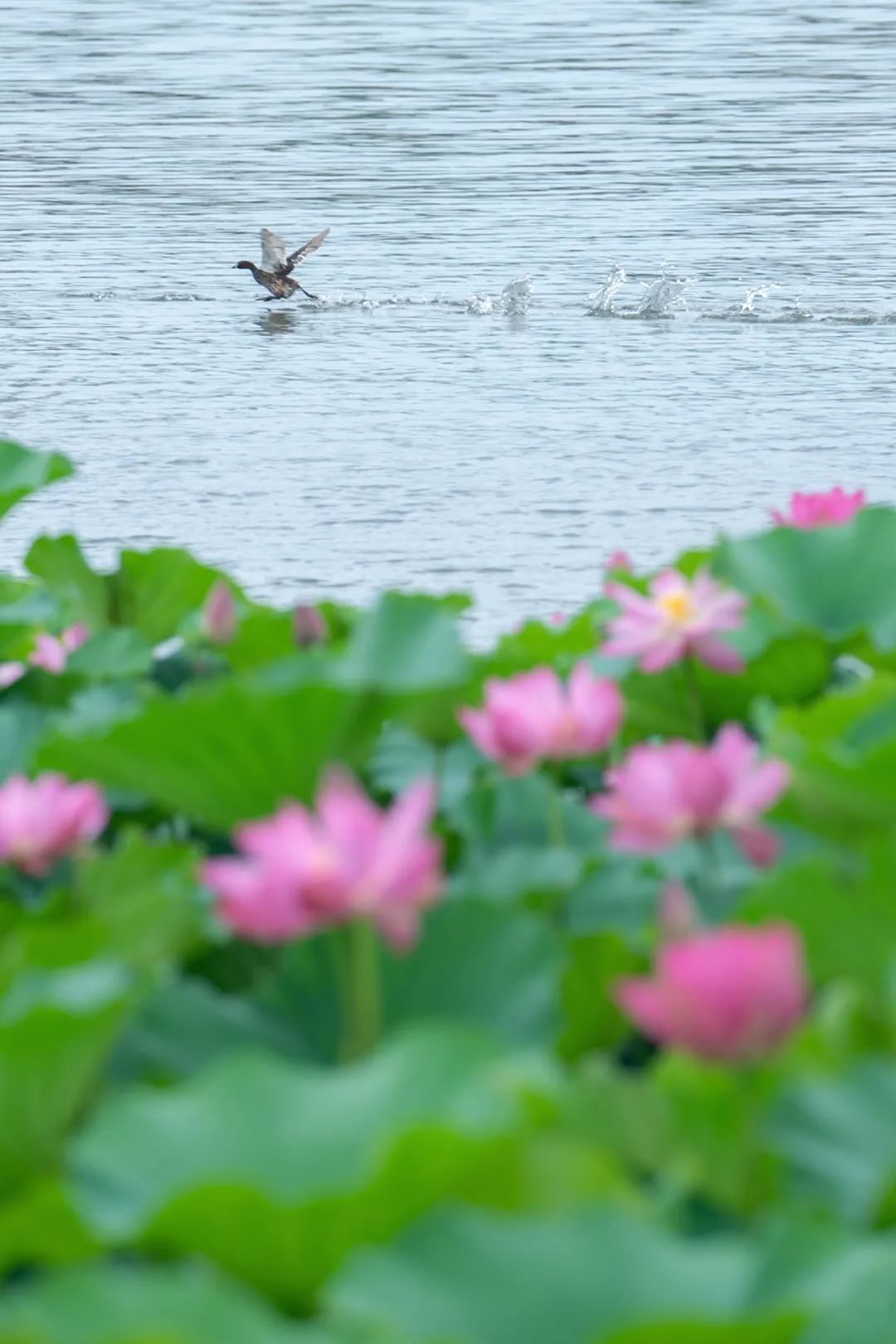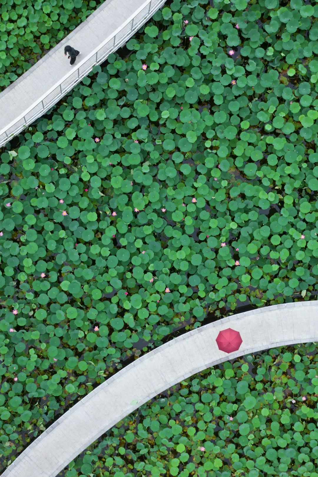 碧绿的荷叶仿佛一块翡翠玉盘,