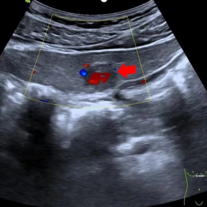 病灶可探测到一支血流由病灶外部进入病灶内(即滋养动脉)