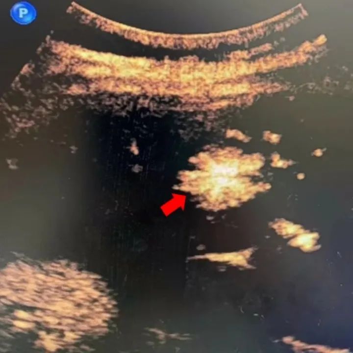 在超声造影下,FNH动脉相快速离心性高增强,约40%的病灶内可见滋养血管由中央向周围呈轮辐状放射。
