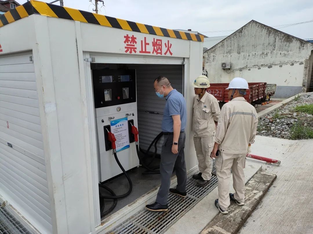 检查组一行对南门油库、新河油库、侯家镇加油站、长兴仁建路加油站、长兴凤凰加油站以及华润大东撬装加油设施开展实地检查。重点对各单位经营证照、从业人员上岗证、安全责任制度、应急演练记录、撬装站油品来源及加油记录等进行详细检查。