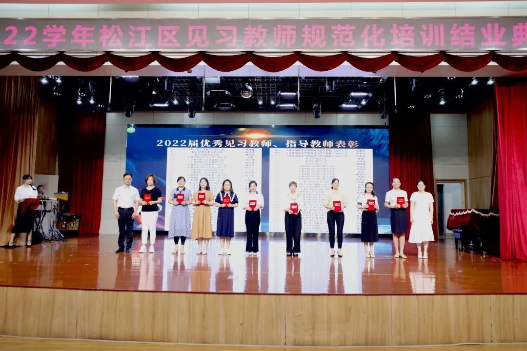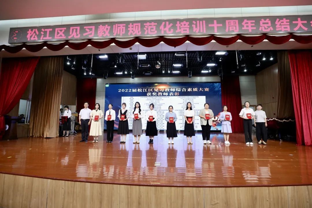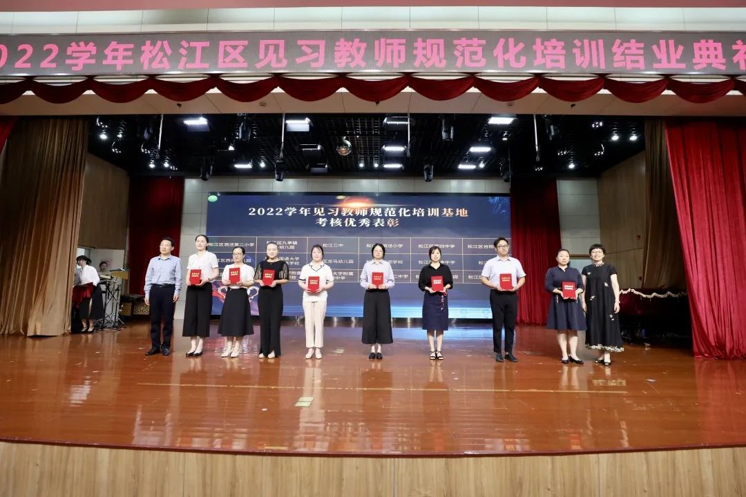 会议表彰了2022届见习教师规范化培训优秀指导教师,2022届松江区见习教师综合素质大赛获奖教师,2022学年见习教师规范化培训考核优秀基地,2021届上海市见习教师基本功大赛获奖教师、市级优秀指导教师、市级优秀规范化培训学校。