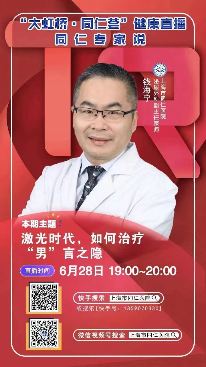 如何运用激光治疗男性疾病?今天19:00—20:00,“上海长宁”APP将与上海市同仁医院“大虹桥·同仁荟健康直播”共同直播:激光时代,如何治疗“男”言之隐。