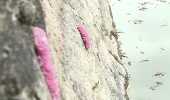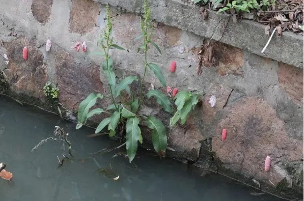 大家在河边见过这种粉色的东西吗?