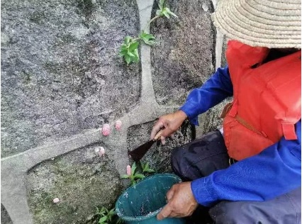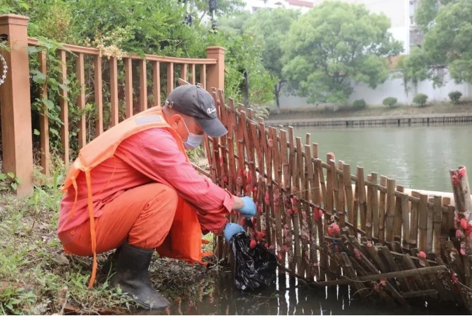 余女士与杭州余杭区农业农村局反映了发现福寿螺的点位后,第二天,专门清理福寿螺的工作人员就出马清理幼卵了。