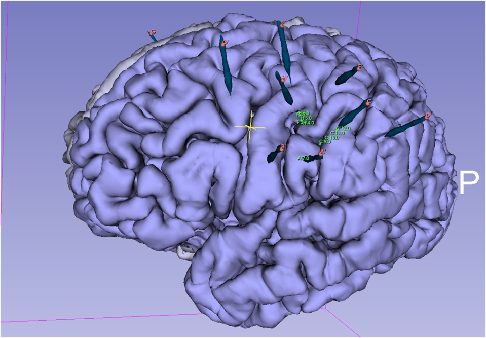 经过多学科会诊评估后,医生发现其颅内中央区的一个病灶是发病的罪魁祸首。棘手的是,病灶位于颅内重要功能区,按照常规手术切除病灶的方式并不可取,最终多学科讨论决定使用微创手术手段,置入了颅内电极,为病灶提供精准监测的同时,争取治疗可能。
