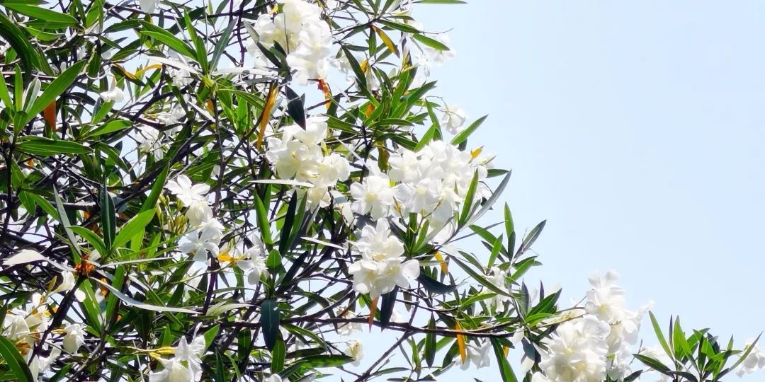 每到夏日,夹竹桃开出了成片或白或粉的花朵,十分漂亮,夹竹桃全株根、茎、皮、叶、花、种子和汁液都有毒,即使服用部分夹竹桃干燥叶也可致人死亡 ,所以大家不要随意采摘夹竹桃,更不能触碰夹竹桃的花朵和枝叶。