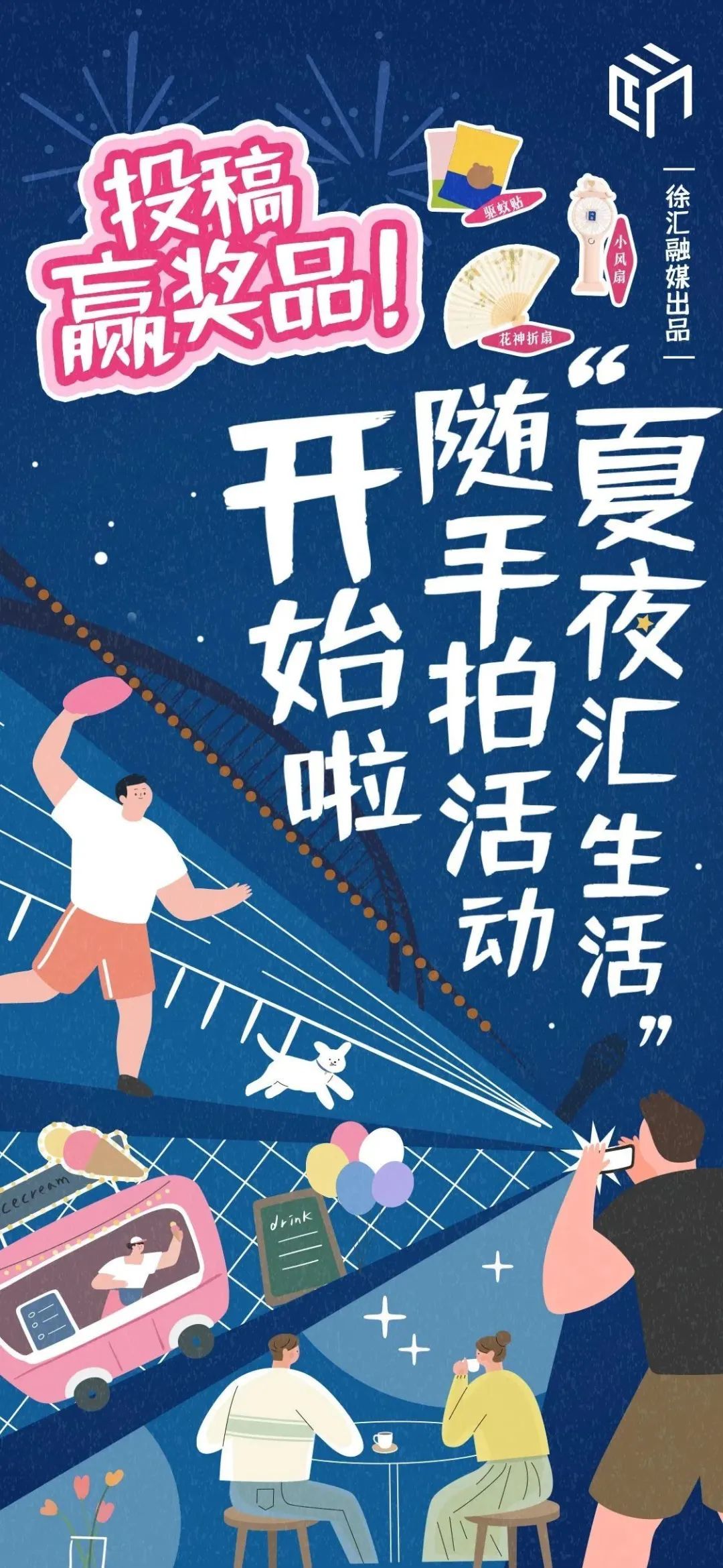 用户通过发布带#夏夜汇生活#话题的汇拍秀,在“徐汇通”APP中,截至活动结束,点赞数排名前5名的用户即可获得 手持电扇 一台。