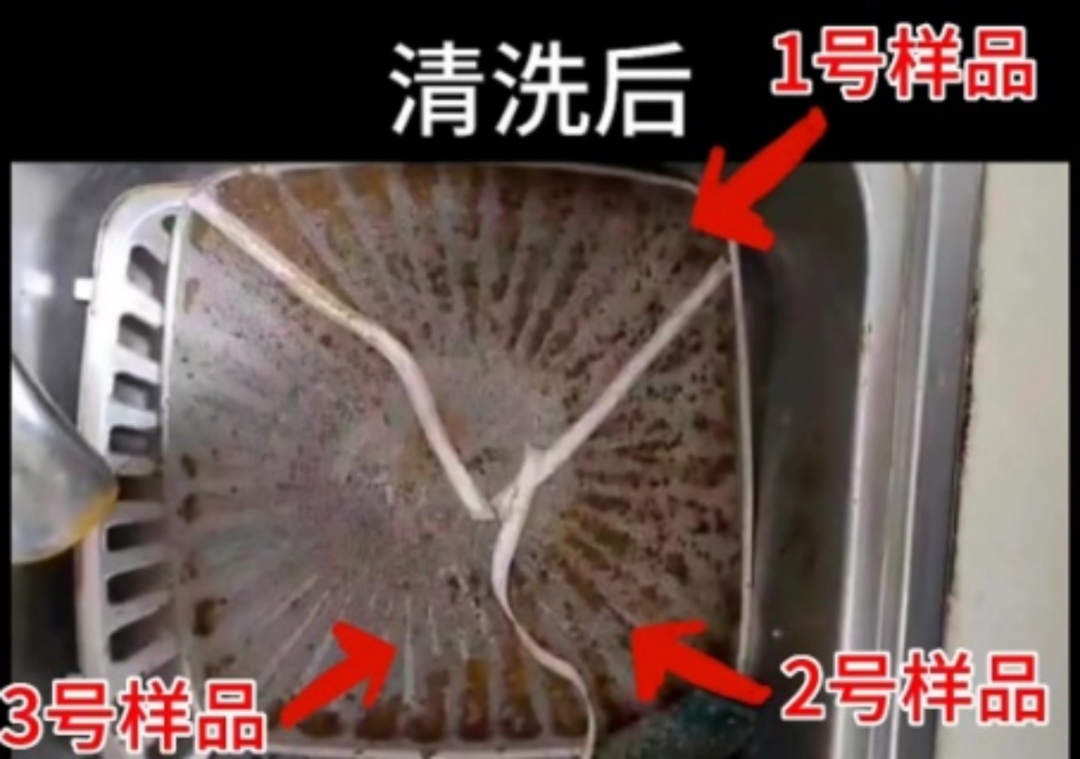 我们像宣传视频那样喷完清洁剂后再静置一段时间,冲洗后发现,3款产品根本没有像视频那样一喷就干净的去污效果!接着我们又用百洁布擦拭,结果发现,即使借助工具,也无法彻底清除油烟机罩上的油污,只是3款产品在去污效果上有所差别,其中1款比另外两款擦得略微干净些。