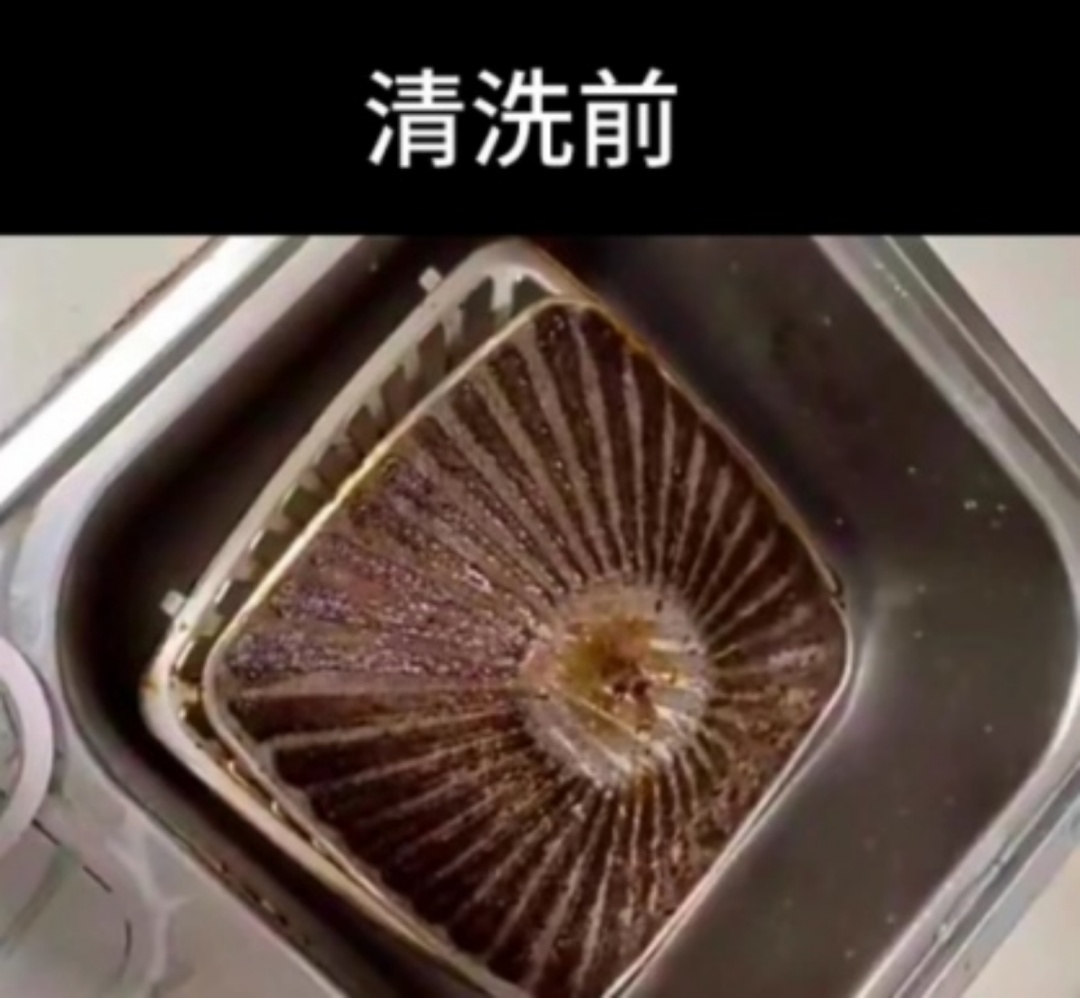 产品到手后我们迫不及待地进行了情景复现,清洗油烟机罩上的油污。