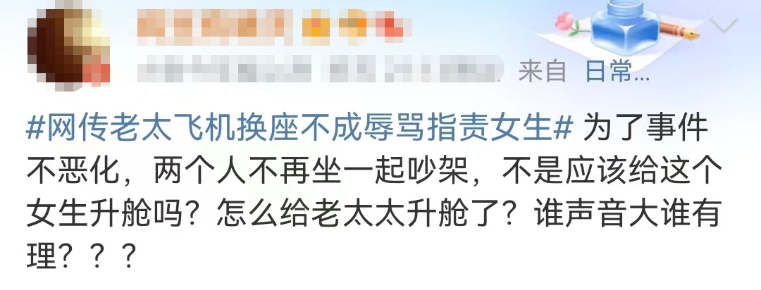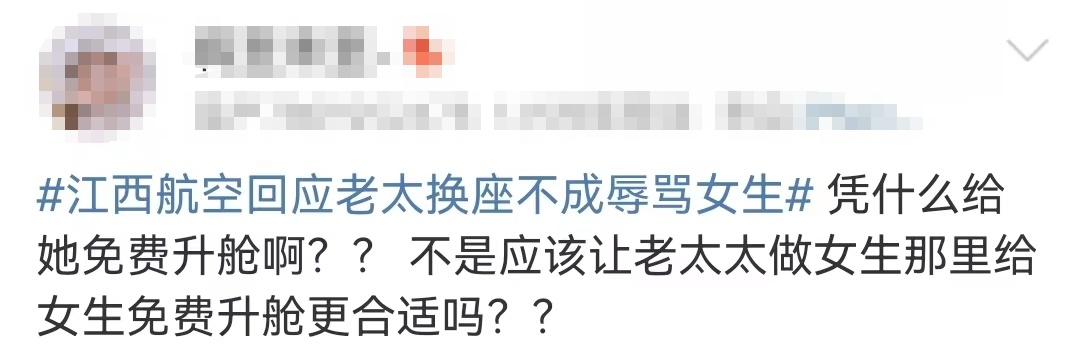 网友造谣航空公司给老太太升舱当然不妥,但航空公司还真应该分清是非黑白,不能和稀泥。否则,凉的不只是年轻女子的心,更是公众的心。