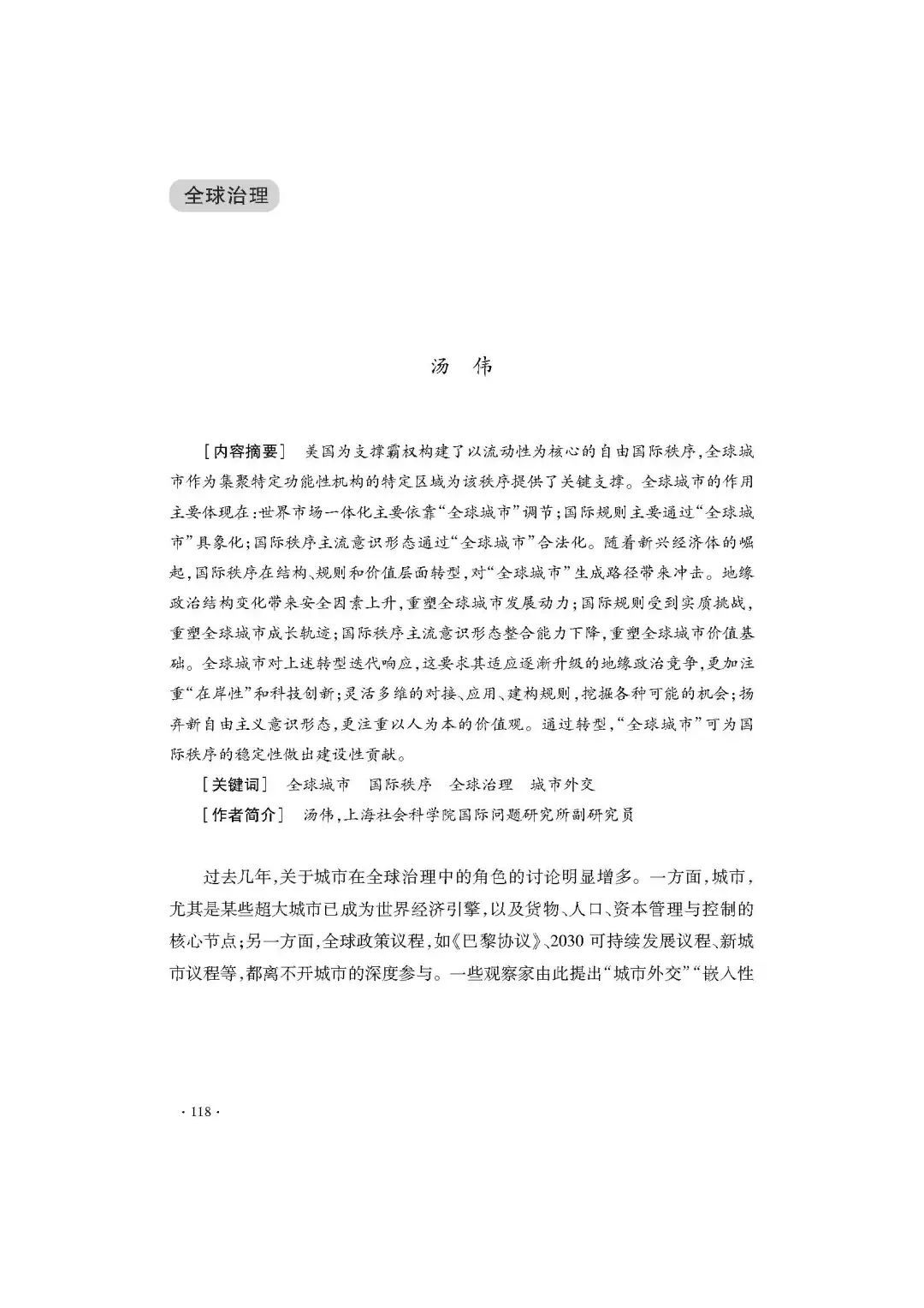 [关键词] 全球城市 国际秩序 全球治理 城市外交