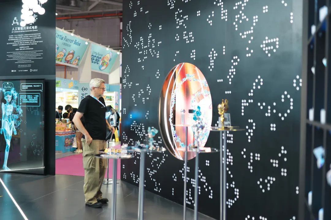 作为全球著名授权行业展会,今年的展会汇聚超过300家展商和1500多个知名IP参展,展示面积扩大至37,000平方米,有260余家授权商参展,所展示的IP涵盖了动漫形象、影视广播、网络文学、游戏娱乐、体育电竞、文博艺术、潮流时尚等领域,规模之庞大、内容之丰富令人目不暇接。本次展会汇集了多个品类的知名IP,其中包括文博类IP如上海天文馆、敦煌博物馆、中国国家博物馆、中国国家图书馆、大英博物馆、大都会艺术博物馆;科幻类IP如AI之梦、三体宇宙、流浪地球、灵笼、机动战士高达、沙丘。在LEC授权展现场,AI之梦展位前人头攒动、大排长龙。上海文旅地标——上海天文馆的总设计师飞苹果带来了他的全新力作——AI之梦参与此次LEC全球授权展。现场,观众可以和超级数字生命体虚拟形象人工智能AiAi爱小爱实时互动对话,通过询问AiAi爱小爱不同的问题,她都会给出十分有趣味的回答。通过沉浸式参观,观众将能够深入探索人工智能与人类关系的未来发展,并引发对科技、人性和社会伦理的思考。