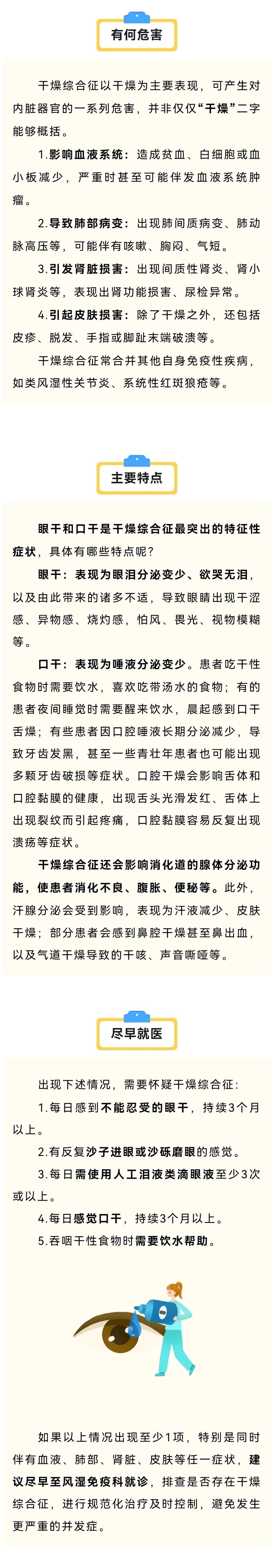 最近天气又闷又热,小伙伴们会不会有这样的感受,发现自己常常感觉口干,水杯不离手。此外,眼睛还不舒服,又干又涩,常有沙砾摩擦眼睛一样的异物感。上海市第十人民医院风湿免疫科副主任医师提醒大家可能是患了一种名为“干燥综合征”的风湿性疾病哟,来听听专家怎么说吧~