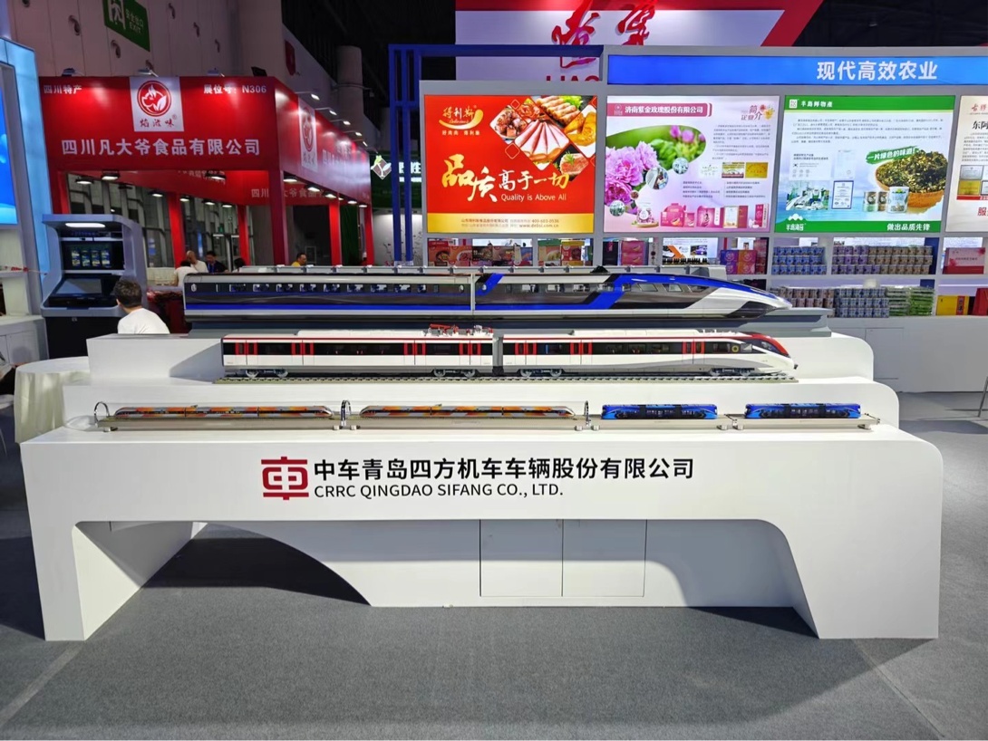 “妈妈,快看!这个模型太酷了!”一位3岁的小男孩刚踏进山东展区便被逼真的列车模型吸引住了,激动地喊。而他眼前的,便是中车青岛四方机车车辆股份有限公司带来的重点推介产品。四辆列车模型分别是时速600公里高速磁悬浮列车、新一代全自动市域列车、“光谷光子号”悬挂式单轨列车和逸群快轨。“川西有很多美丽的景点,目前多以自驾为主,希望未来我们可以在川渝地区建设更多中低运量的线路,给大家提供一种更绿色、更便捷的出行方式,吸引更多的游客前来感受当地的风土人情。”中车青岛四方股份城轨事业部负责人肖娟说。