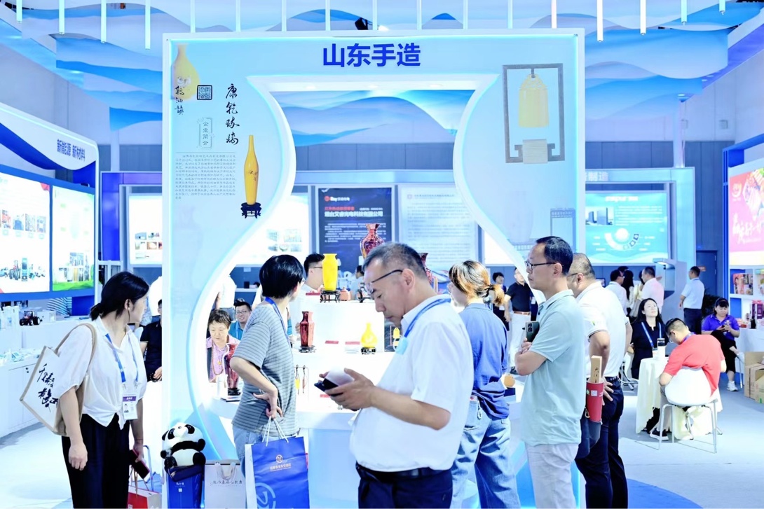 (山东展馆内的“山东手造”吸引了众多参会人员)