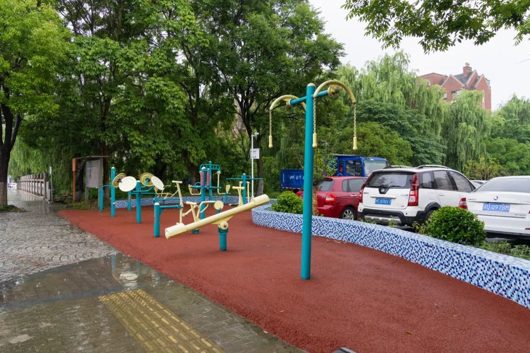 本次口袋公园的改造提升了绿地空间的使用度,配备了座椅、照明等服务设施,重建了活动场地,将场地内的人防出入口与绿化景观相结合,以达到美化、功能化的效果,进一步满足周边居民游憩、休闲、观赏的需求。
