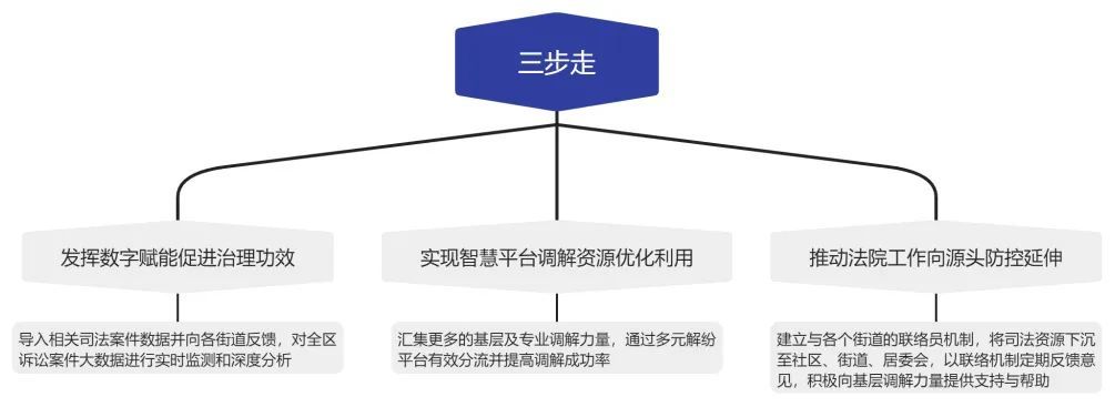 “数字赋能”是三步工作中的一大亮点,其重点在于协同运用多种现代化信息技术能发挥资源共享基础上的多元主体合力,从而实现社会治理智能化、精准化。