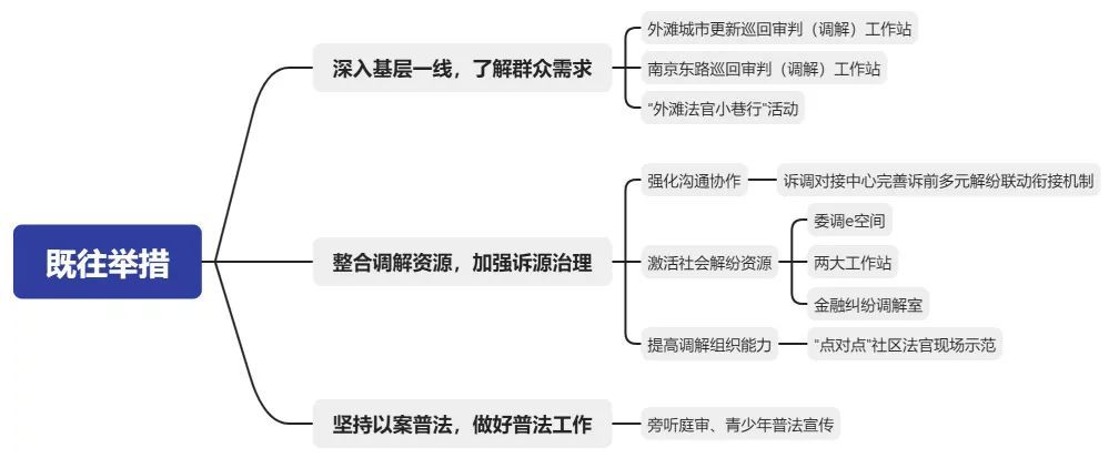 近年来,黄浦区人民法院坚持能动司法,在主动融入诉源治理上取得了一定工作成效。通过深入基层一线、整合多元解纷平台、激活社会解纷资源等举措,积极延伸职能,加强源头治理。