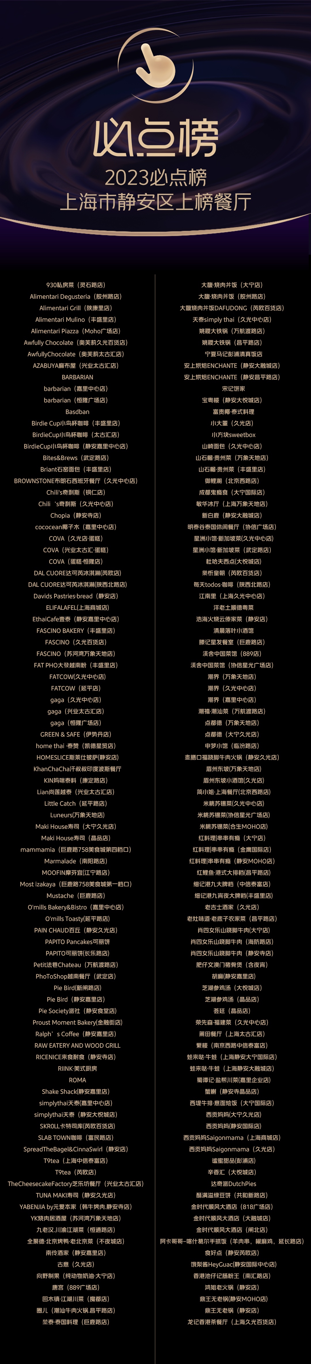 在上海榜单中,本帮江浙菜、海派创意菜层出不穷,充分体现了海派文化“海纳百川,兼容并蓄”的精髓。从本帮菜餐厅新白鹿到冰激凌天花板Luneurs,从BirdieCup Coffee小鸟杯咖啡到T9-tea茶饮,全时段、全场景的消费需求都能得到精致满足。