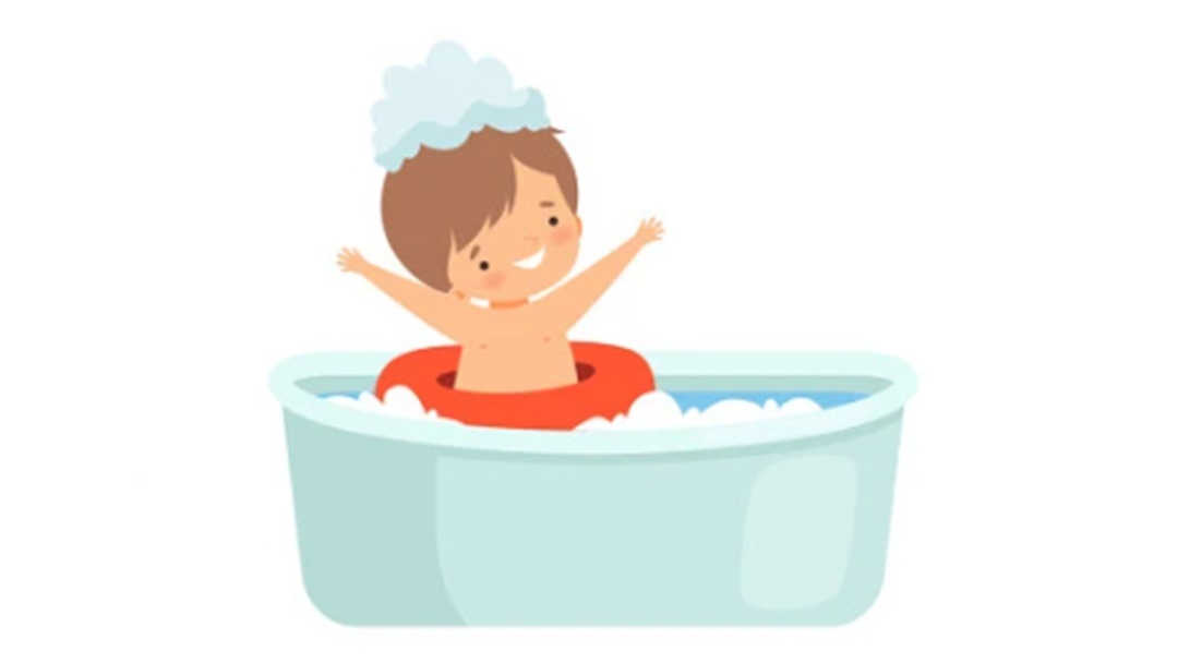 给幼儿洗澡时,为防止烫伤,应在浴盆中先放冷水,再兑入热水,等水温合适后再让孩子洗澡。