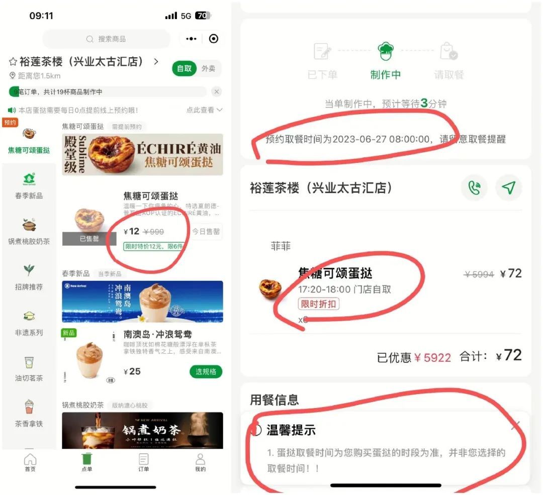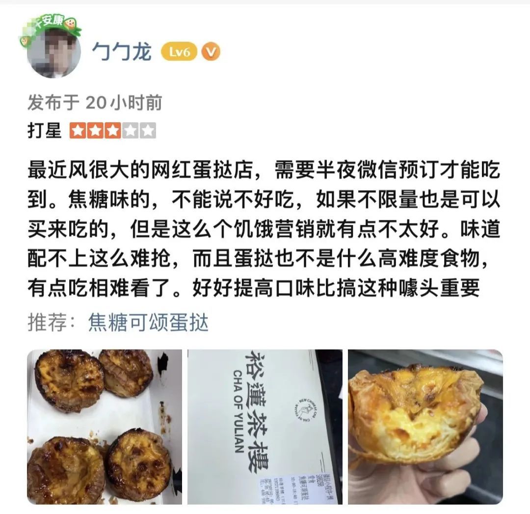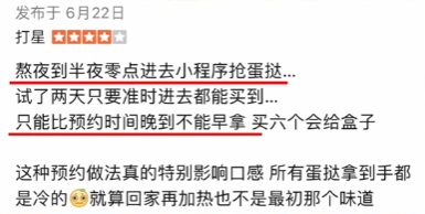 杨昀还介绍道,该家茶楼每天凌晨12点在线上发售蛋挞,虽然是商家的一种自主的经营行为,但营造了一种饥饿营销的感觉,这也是很多一些网红店吸引顾客的一种噱头和套路。
