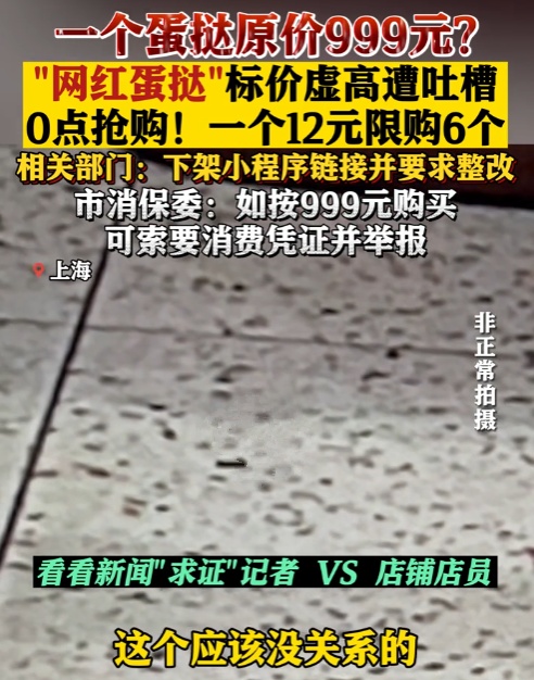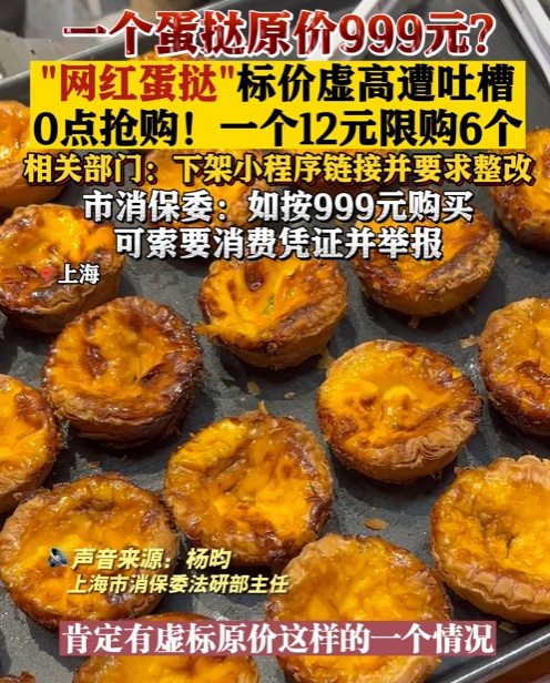 面对市场监管局的询问,店家反馈称,该蛋挞是网红款甜品,比较抢手,每天凌晨上架。实际上从来没有以999元的价格售卖过,由于线上小程序后台设计的原因,将价格定成999元,引起了消费者的误解。