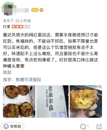 还有一些网红店出现了“花钱排队”“虚假好评”“夸大营销”等问题。