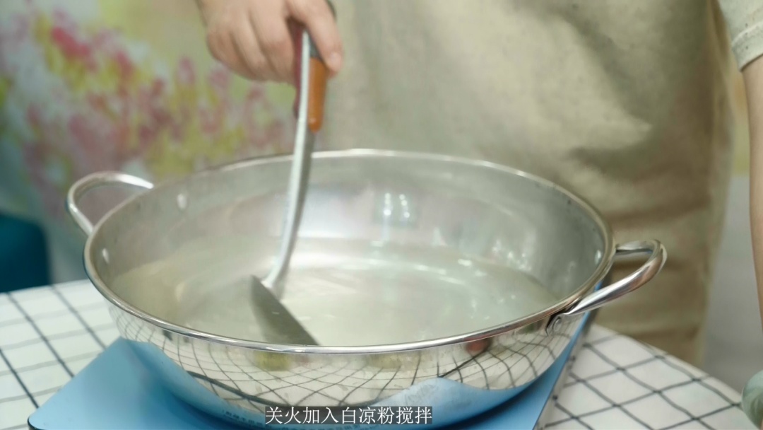 3.关火加入白凉粉搅拌。