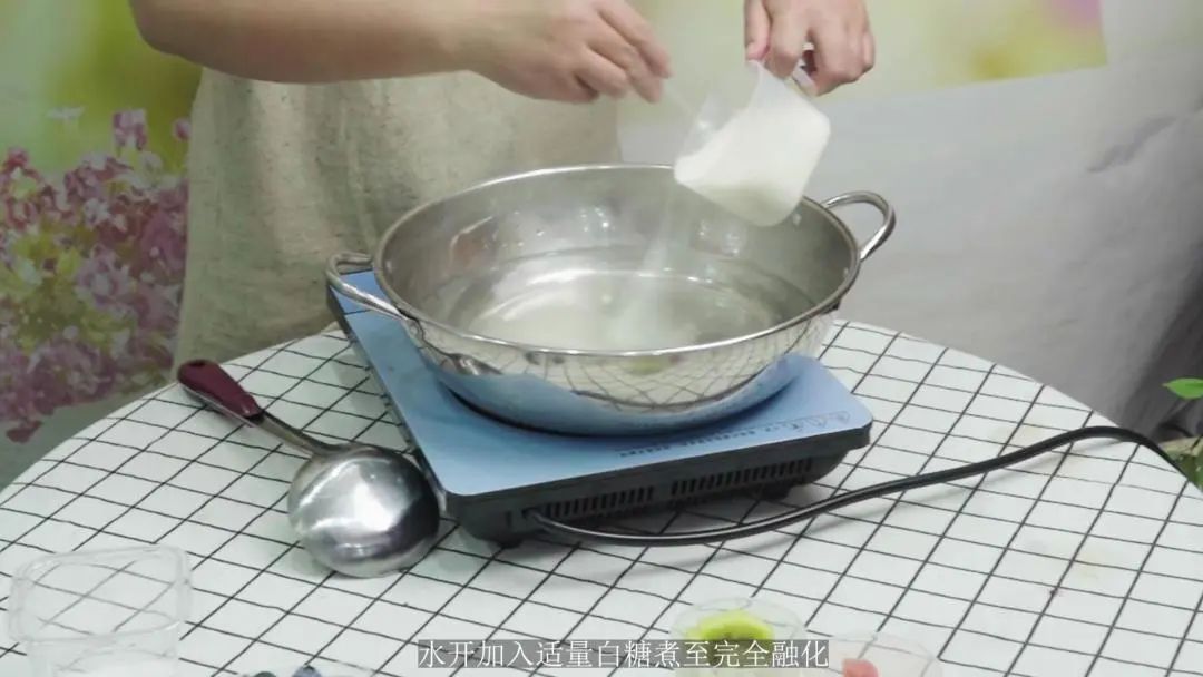 2.水开加入适量白糖煮至完全融化。