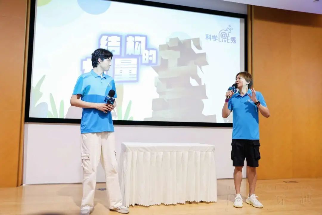 启动仪式现场,上海科技馆展教中心带来科学LIVE秀《结构的力量》,以有趣的互动实验展示了场馆科创精品资源。