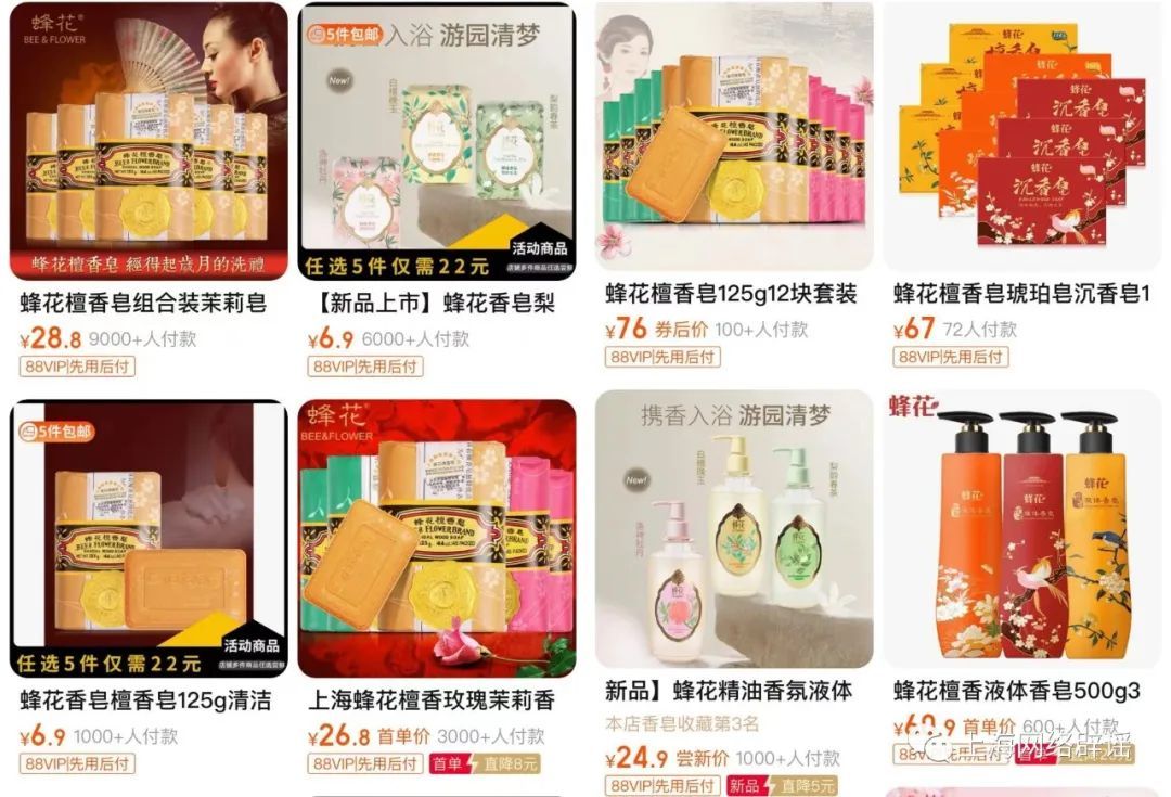 蜂花日用品出品的部分“蜂花”产品 ↑