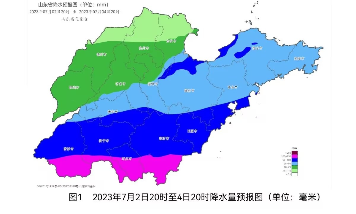7月2日,记者从山东省气象台了解到,受副高边缘西南暖湿气流和西风槽共同影响,预计2日夜间至4日白天,我省中南部和半岛地区自南向北有一次较强降雨过程,局部伴有雷电和7—9级雷雨阵风。全省累积平均降水量30—50毫米,强降雨主要集中在3日白天至夜间,1小时最大降水量40—60毫米。