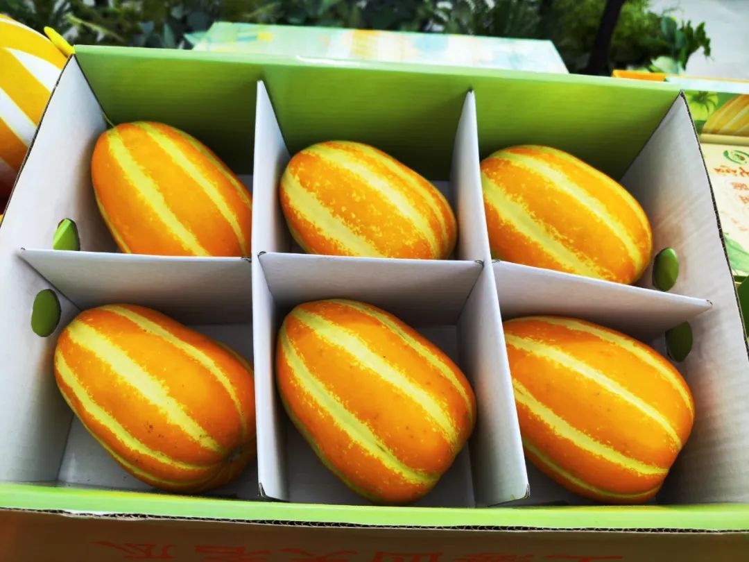 经过3年努力、5代提纯复壮,技术团队攻克了育苗难、病虫害多、糖度低、货架期短等一个又一个技术难关,并不断改进种植方式,应用绿色栽培技术,如今的七宝黄金瓜外形在保持记忆中的椭圆形、金黄皮、标志性的“十条筋”的基础上,果质更加肥厚、清甜。