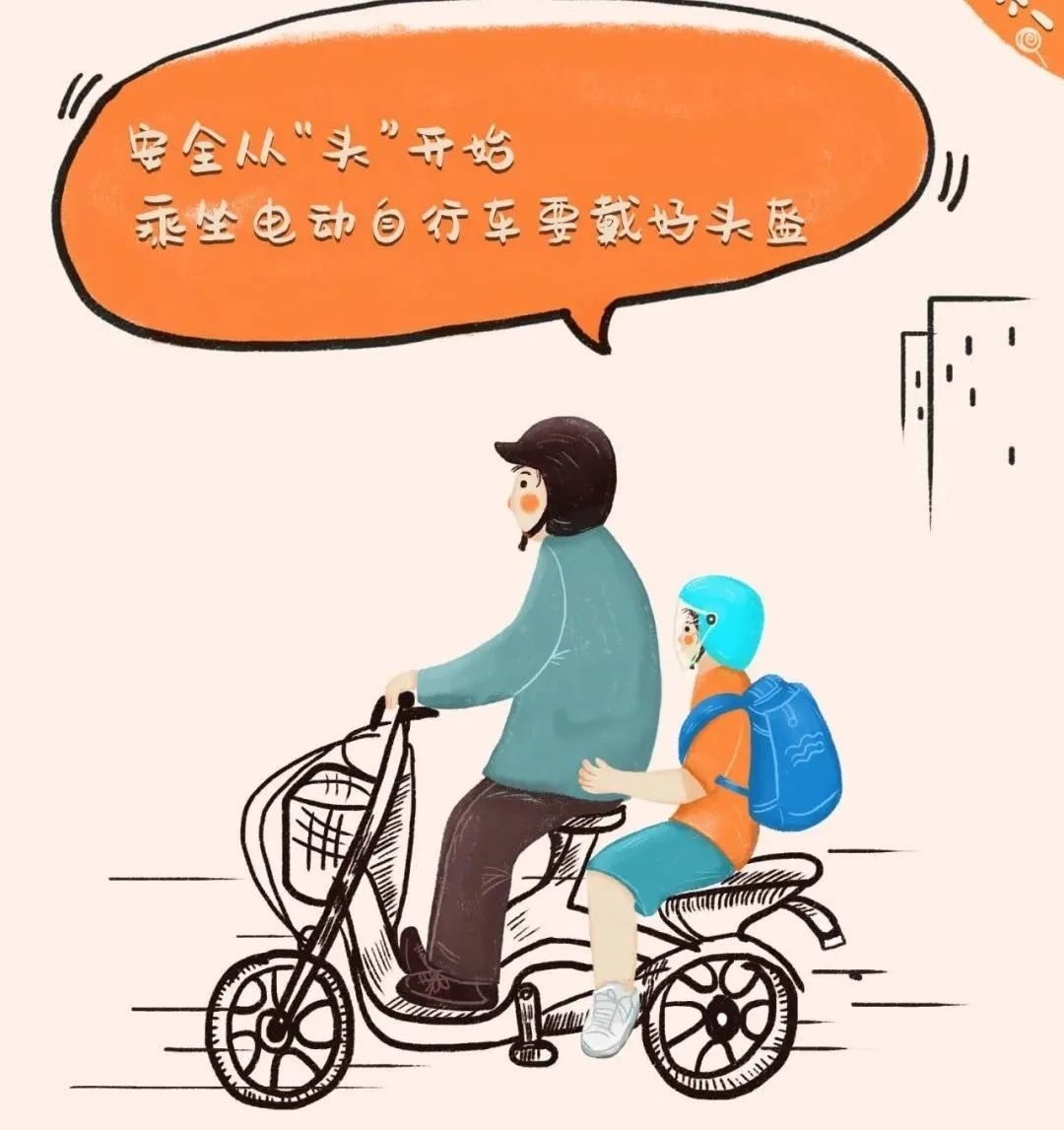 1.乘坐电动自行车时佩戴好安全头盔。