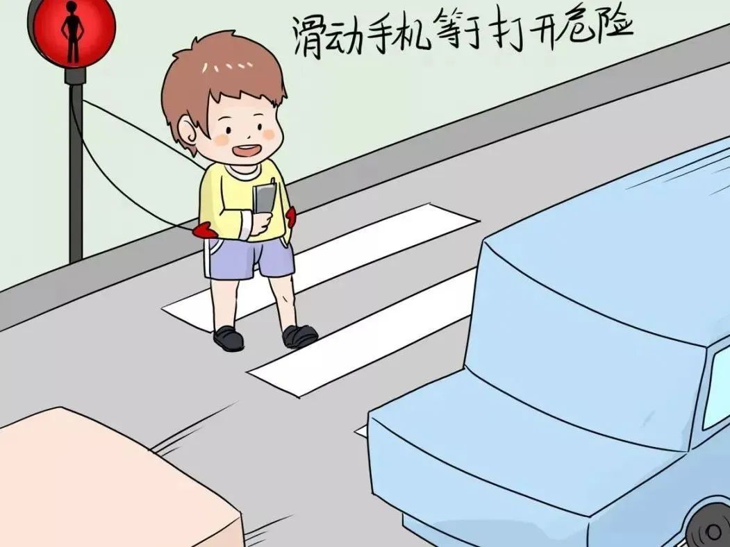 2.通过路口切勿追逐打闹,不要低头看手机,做到“一慢、二看、三通过”。