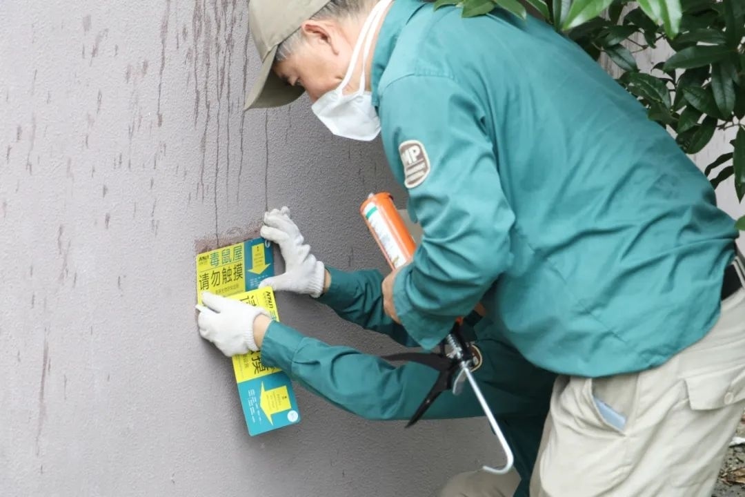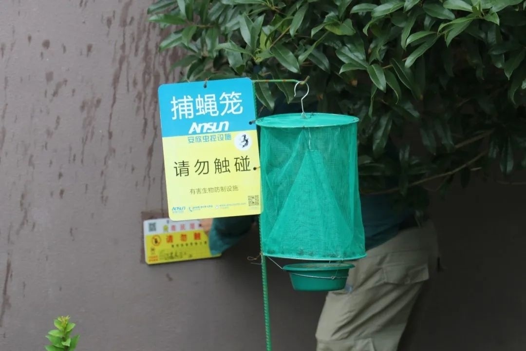 同时,在容易忽略的食品仓库放置了粘鼠板,确保原材料不被污染。除了餐饮行业,酒店、菜市场也都是预防的重点场所。尤其是菜市场周边的垃圾站,是“四害”的聚集地,工作人员不仅对垃圾箱进行了消杀,还在周围放置了捕蝇笼、毒鼠屋,确保重点区域全覆盖。