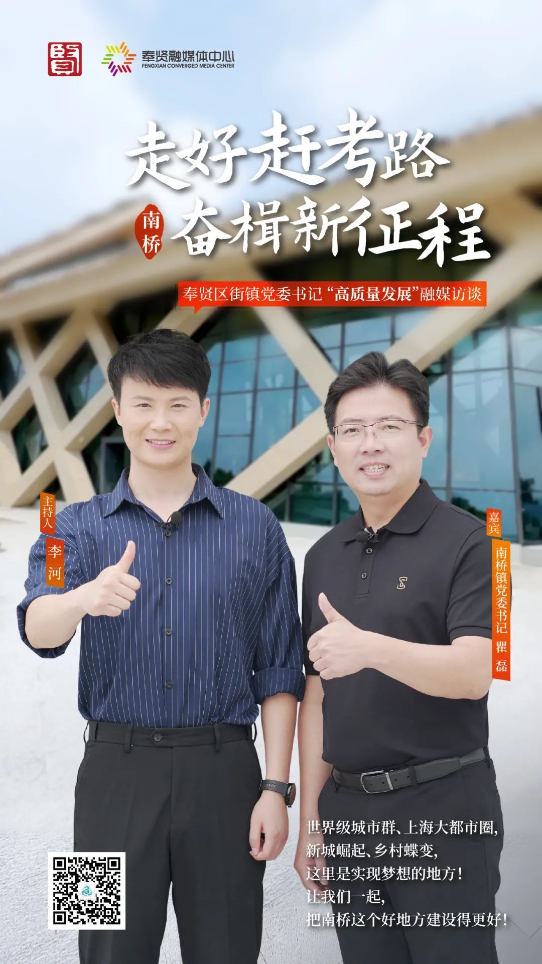 奉贤区街镇党委书记“高质量发展”融媒体访谈的最后一站,来到了国际大都市下古韵悠长、乡村繁荣、生态宜居、经济高质量发展的南桥镇,感受南桥镇日新月异的城市面貌,大幅提升的城市环境和生活品质,和市民不断增加的获得感和幸福感。南桥镇党委书记瞿磊在访谈中表示,未来,南桥镇将全力以赴,加快更高质量发展,推动更高效能治理,创造更高品质生活,以南桥之为奋力走好“绿色生态、实力强劲、人民幸福”的发展新征程。