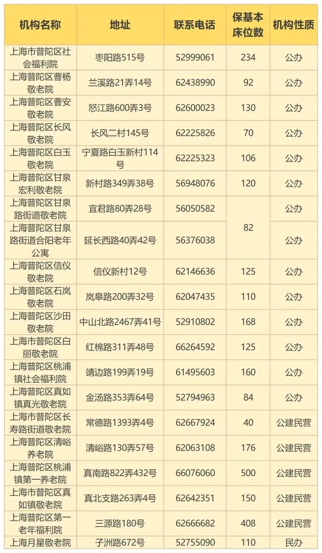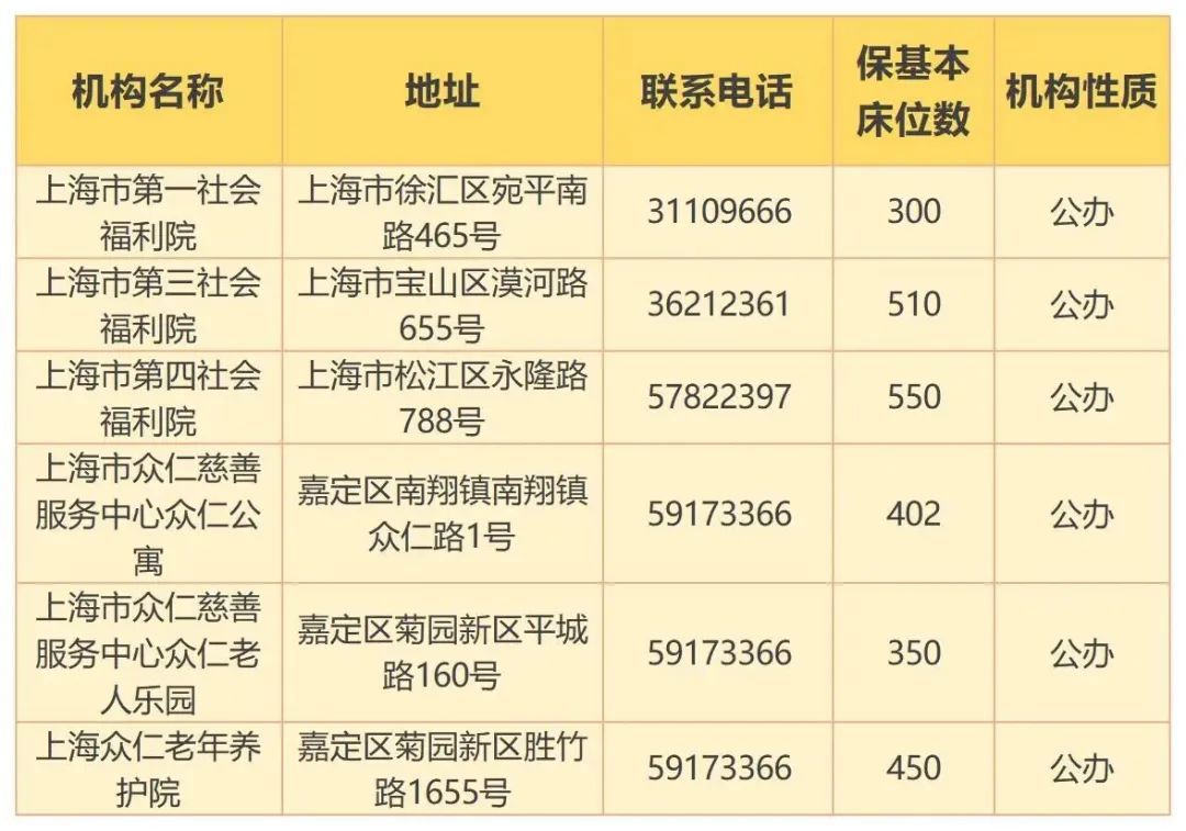 2022年12月,本市出台《上海市保基本养老机构(床位)管理办法》。根据《办法》规定,每年6月底前,市民政局统一发布全市保基本养老机构(床位)名单(名单见下方)。