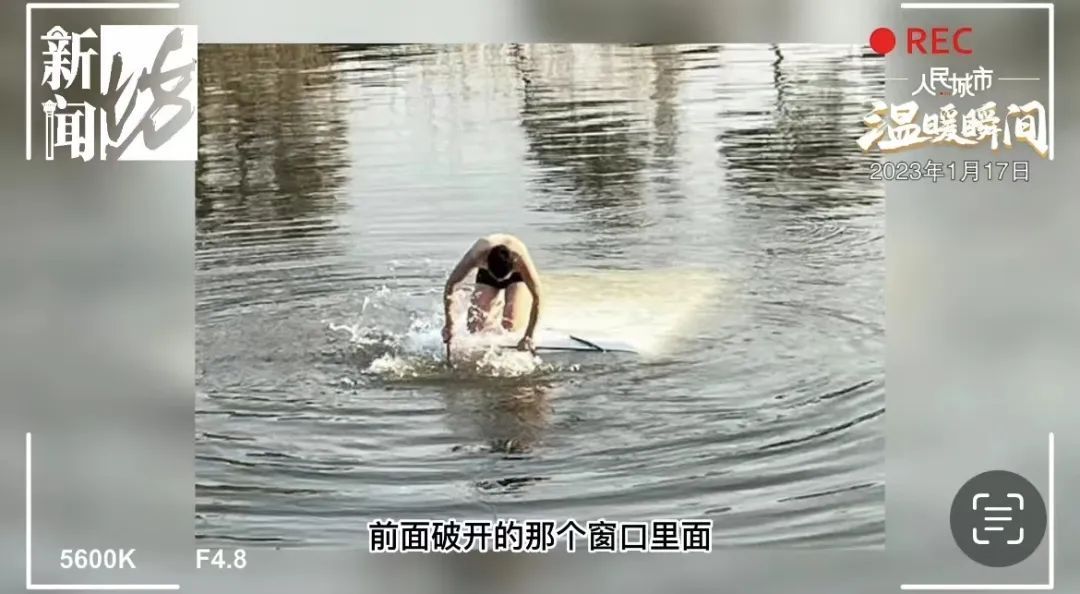 陆东辉回忆道,“我先想潜水下去试试看能不能把门把手拉开,但是我当时感觉头顶发麻,因为太冷了。”