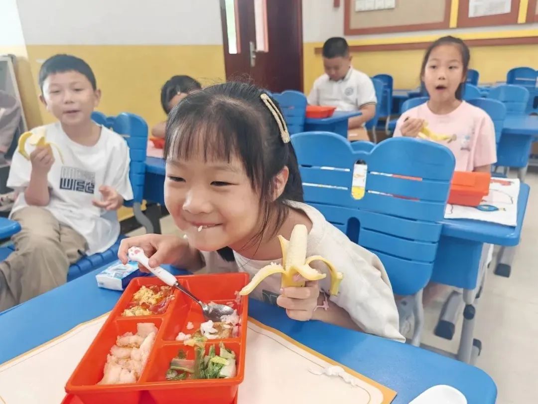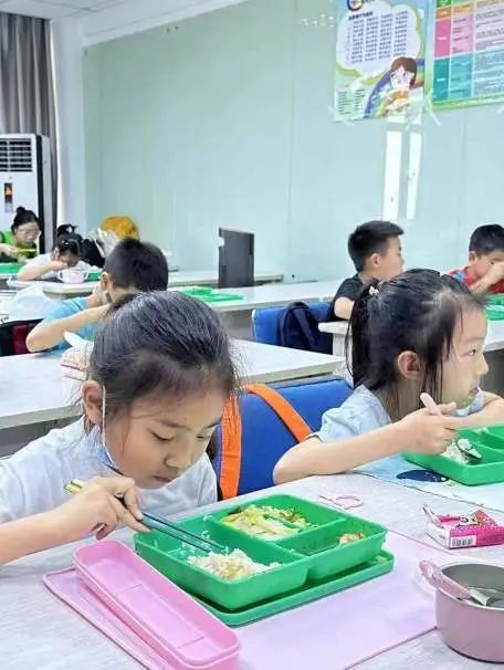 一大早,爱心暑托班的老师和志愿者们早早来到办班点,迎接第一天入托的小朋友们。各班负责人登记签到、安排座位,一切工作有条不紊地进行,古美吉祥物“古小美”也来到现场,欢迎小朋友的到来。开班第一课、自我介绍、诗词闯关、益智活动,同学们在老师的引导下不一会便“打”成一片。转眼就到了午餐时间,志愿者们挨个为小朋友们分发午餐,黄焖鸡腿、黄瓜炒蛋、土豆排骨汤……小朋友们吃得不亦乐乎。