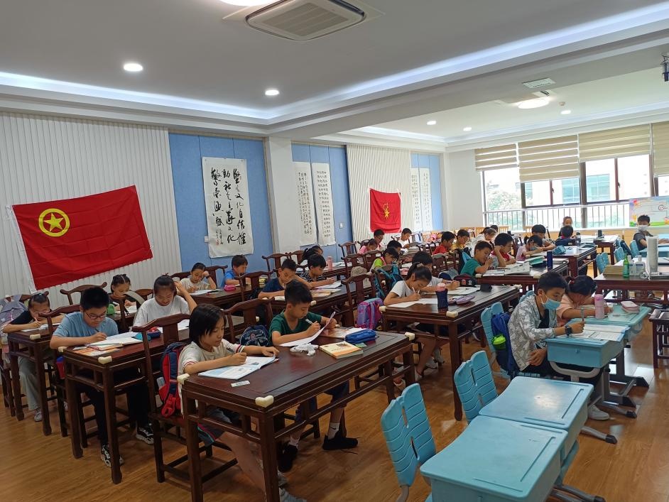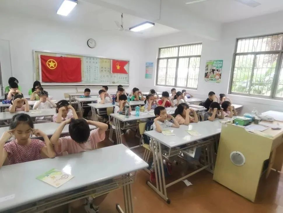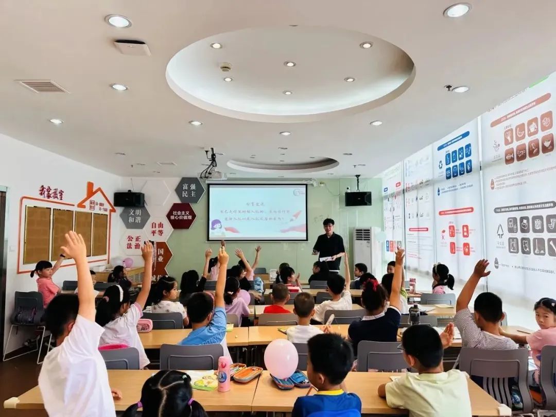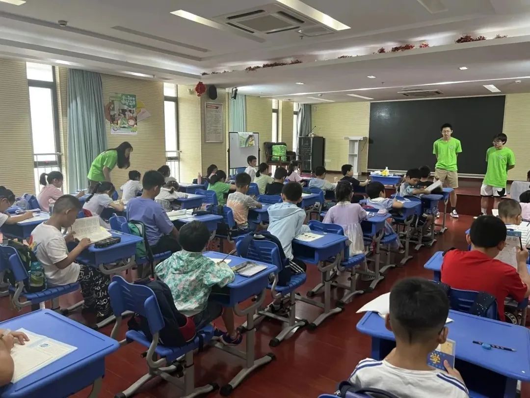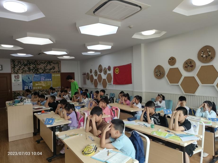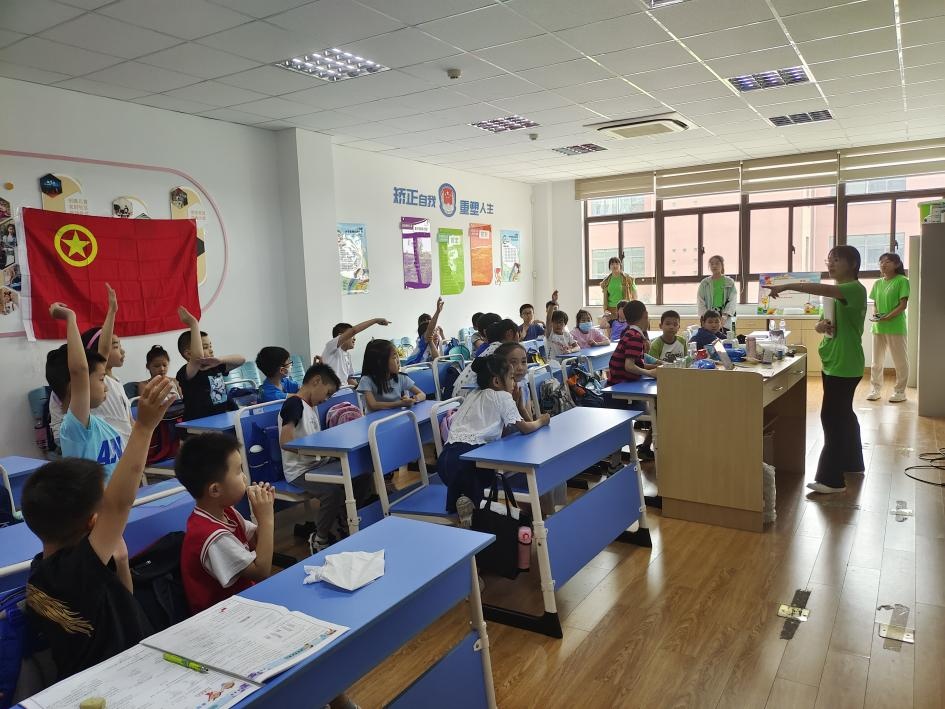 颛桥镇爱心暑托班的第一天,班主任组织进行了开班仪式,带领着孩子们一起唱国歌和爱心暑托班主题曲,孩子们的歌声整齐而嘹亮。不仅如此,老师还开展了红十字健康安全教育活动,更好地认识急救知识,提高孩子们保护生命健康安全的意识和能力。