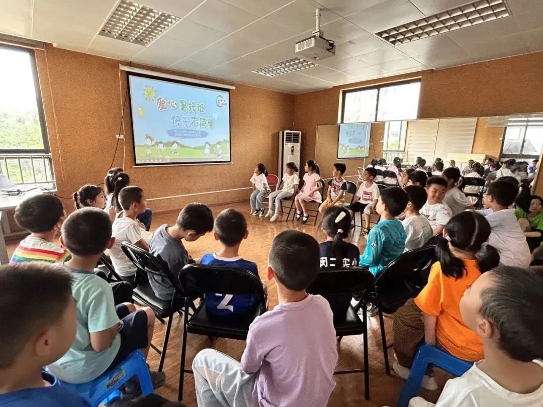 爱心暑托班开设2个办班点,5个班级,其中一个点位还设置在公园里,基本覆盖辖区内小学生的入托需求。开班伊始,一场破冰游戏让大家认识彼此,一次升旗仪式更是振奋大家精气神,活动丰富多彩,让每个小朋友度过快乐一天。