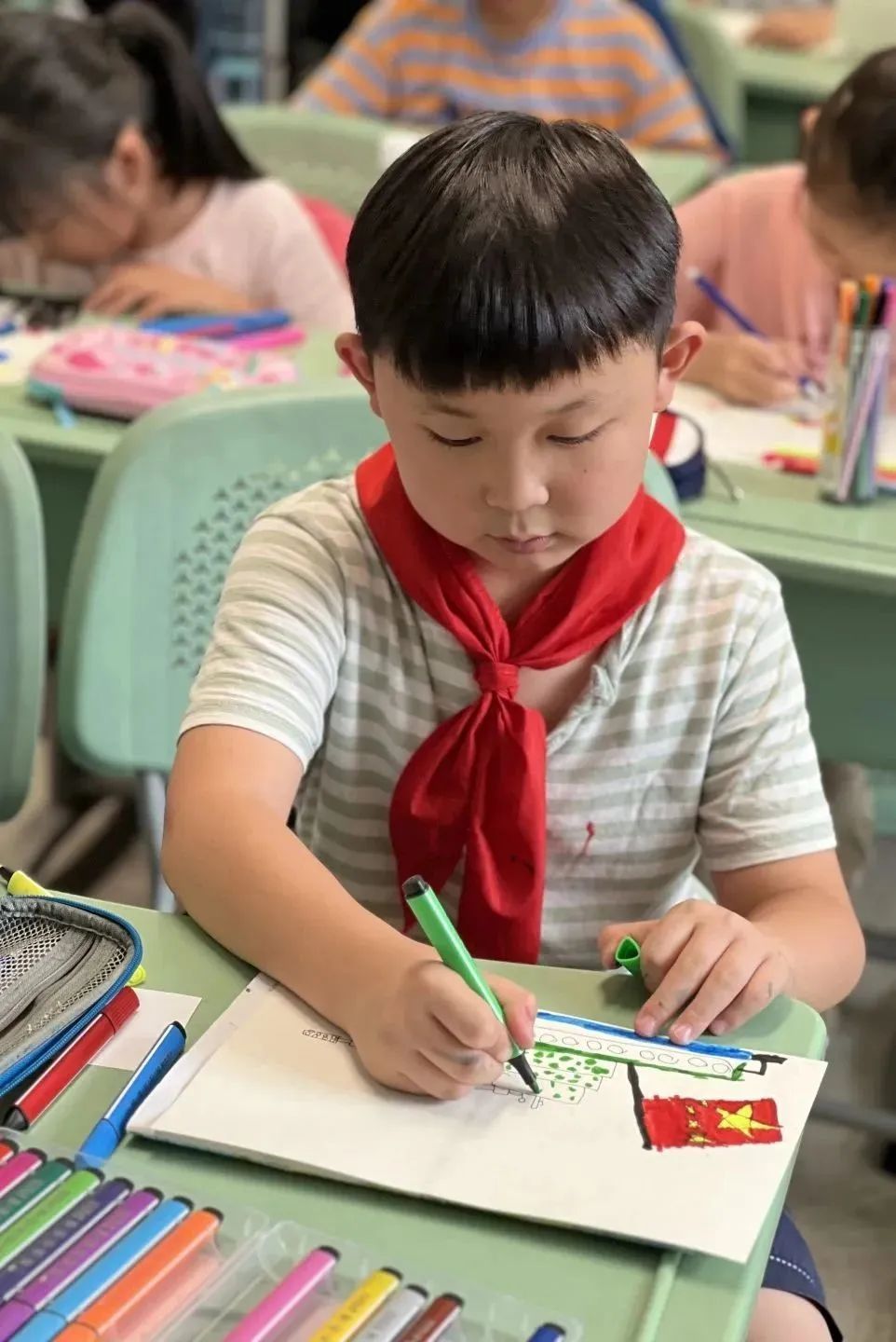 在老师们和志愿者们简单的自我介绍后,小朋友们和小伙伴们组成了各自的中队,在开班仪式上上台介绍,并摆好姿势、大声地喊出口号,爱心暑托班正式启动。老师为小朋友们带来了精彩的开班第一课讲座,从有志向、有梦想,爱学习、爱劳动,懂感恩、懂友善,敢创新、敢奋斗,四个方面呼吁孩子们要德智体美劳全面发展。老师们还给小朋友们开展了美术活动,指导小朋友们在一张张纸上展现江南水乡绝美风光。
