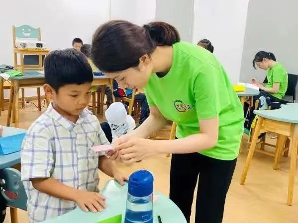 在吴泾镇爱心暑托班里,志愿者大哥哥大姐姐们正在带孩子们一起折纸,不管是小青蛙,还是纸飞机,都活灵活现。还有警察叔叔为小朋友讲述网络安全知识,我们听得可认真啦!