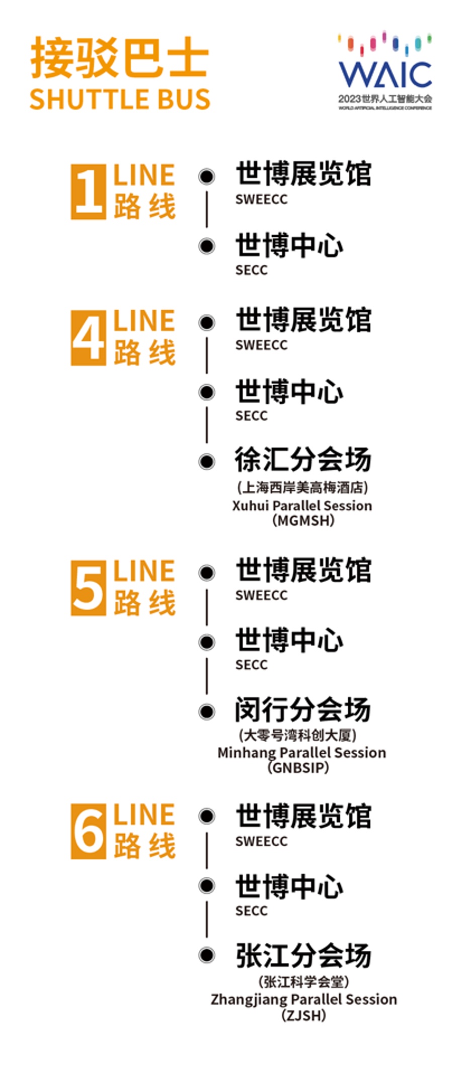 为方便专业观众参观,大会组委会在主会场两馆之间及主会场与分会场之间均安排接驳巴士,具体时间安排请参考现场接驳时刻表。