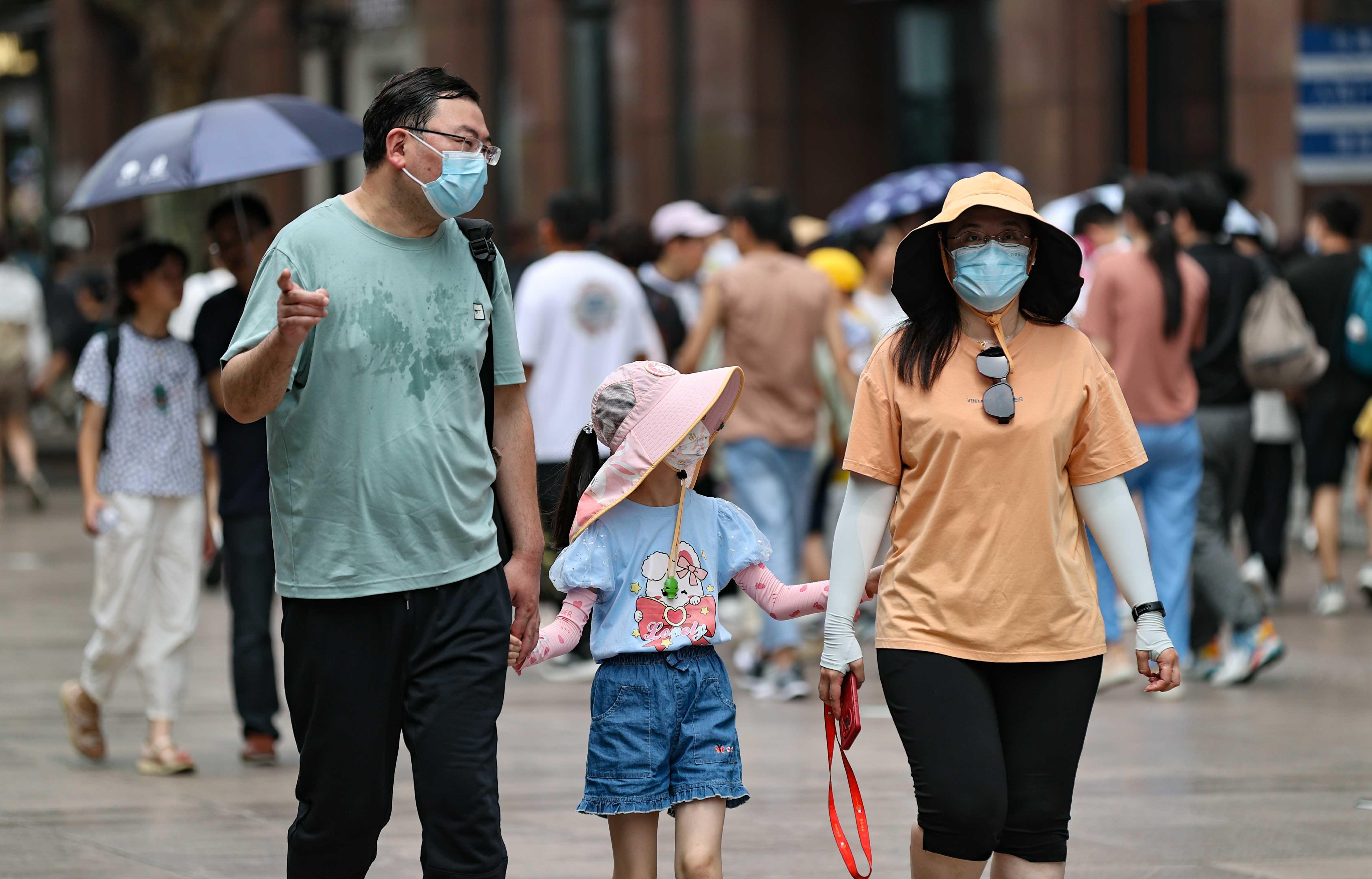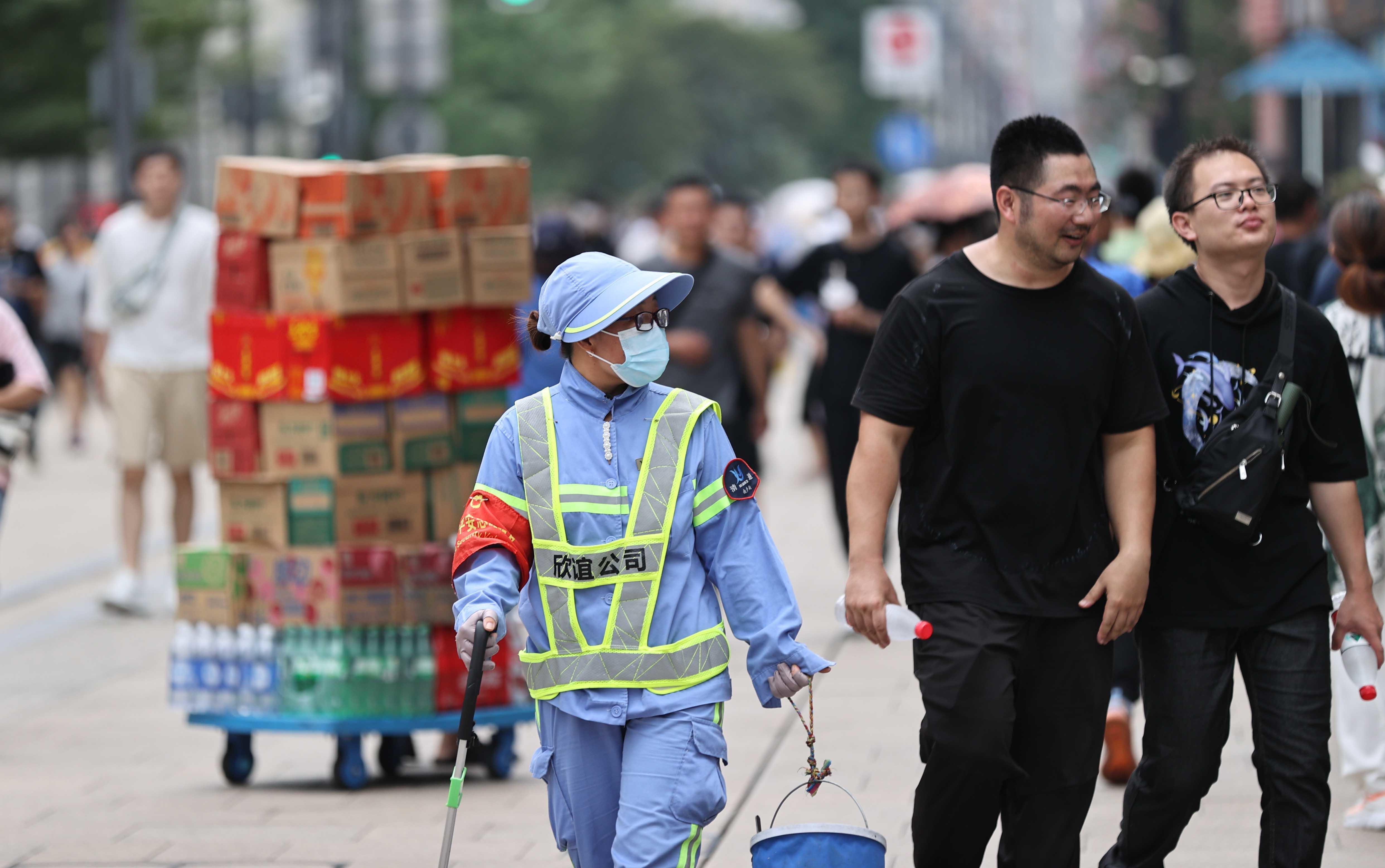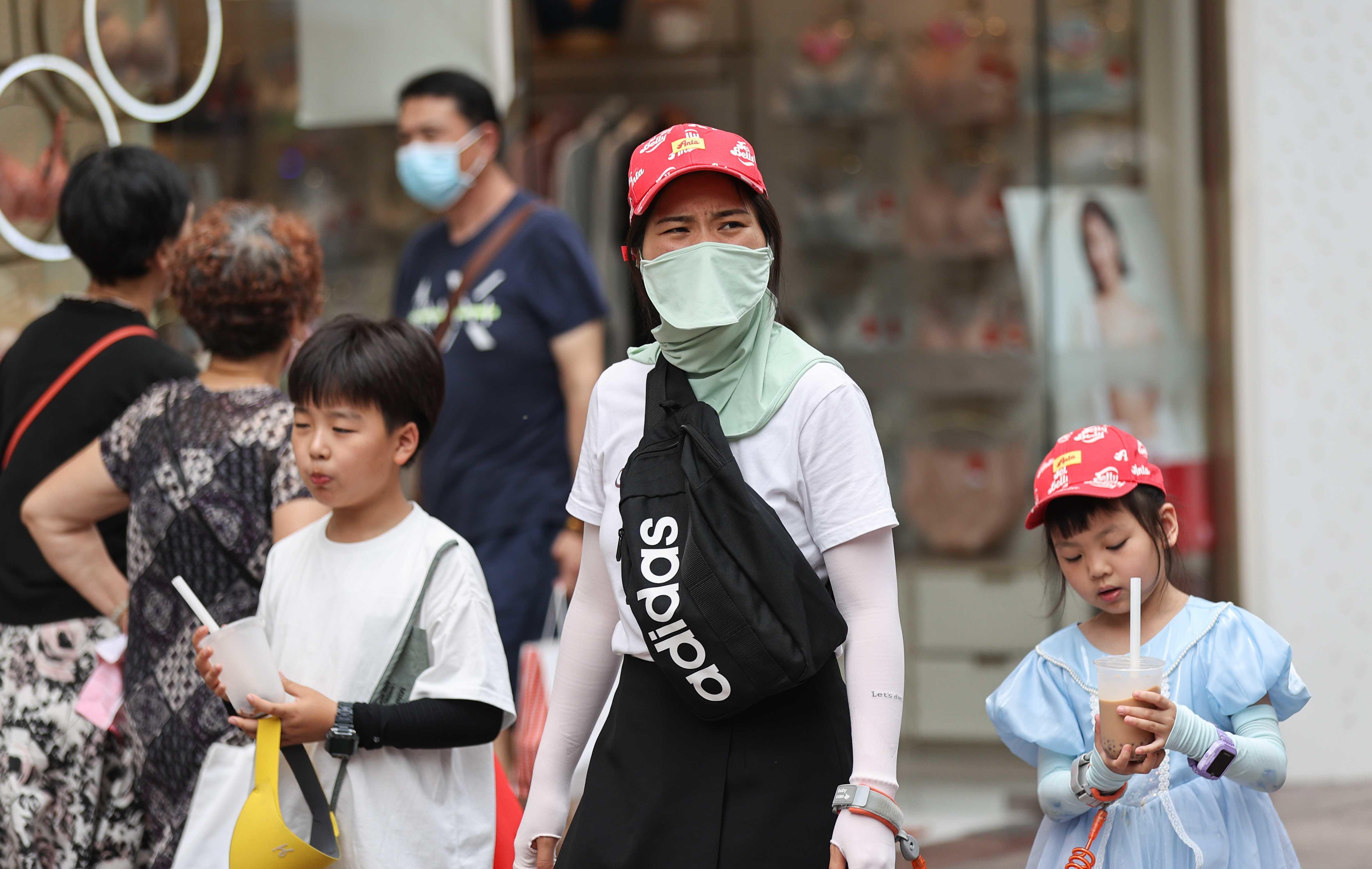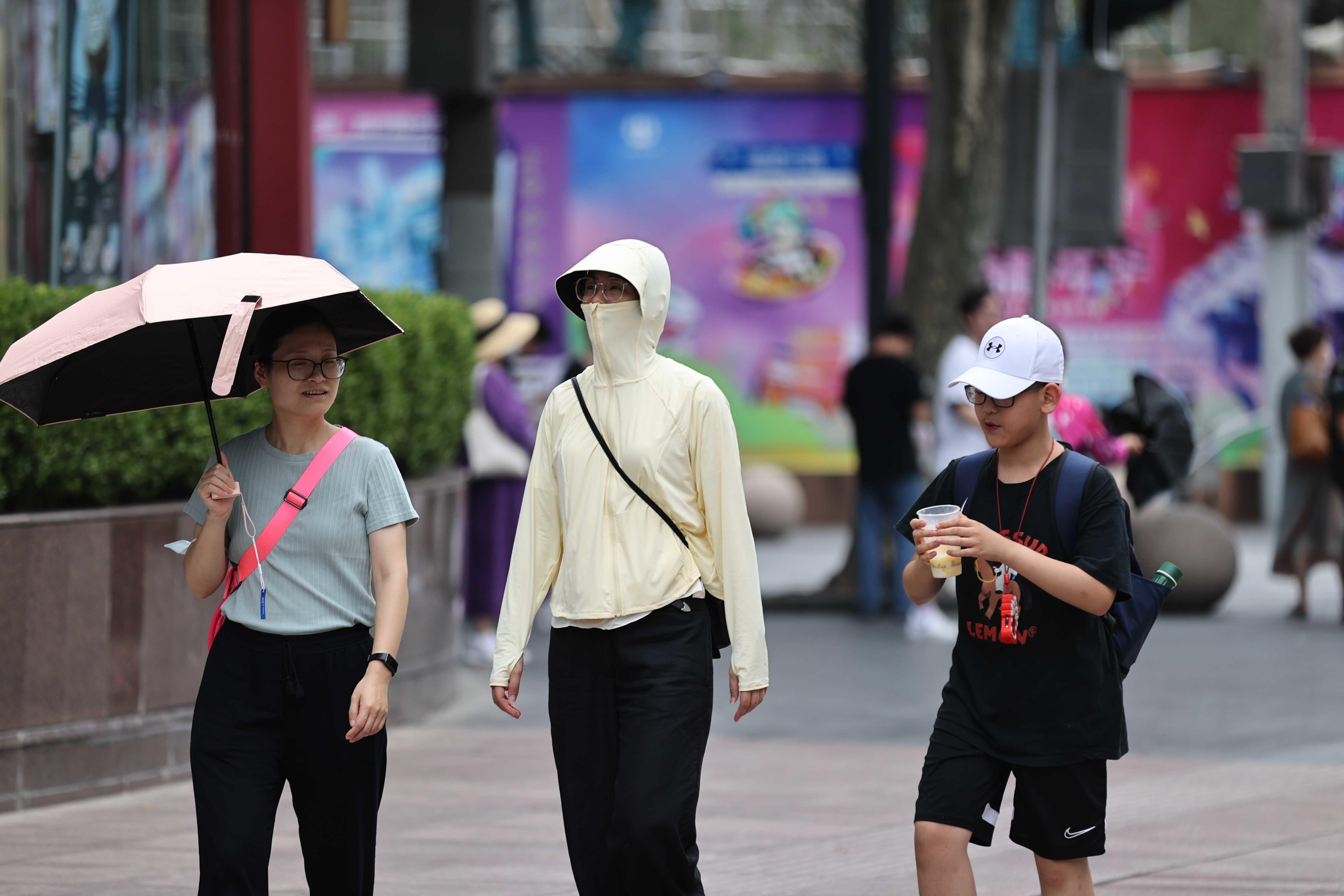除往年常见装备外,最近爆款的“脸基尼”防晒面罩成为了烈日下的一道独特风景。